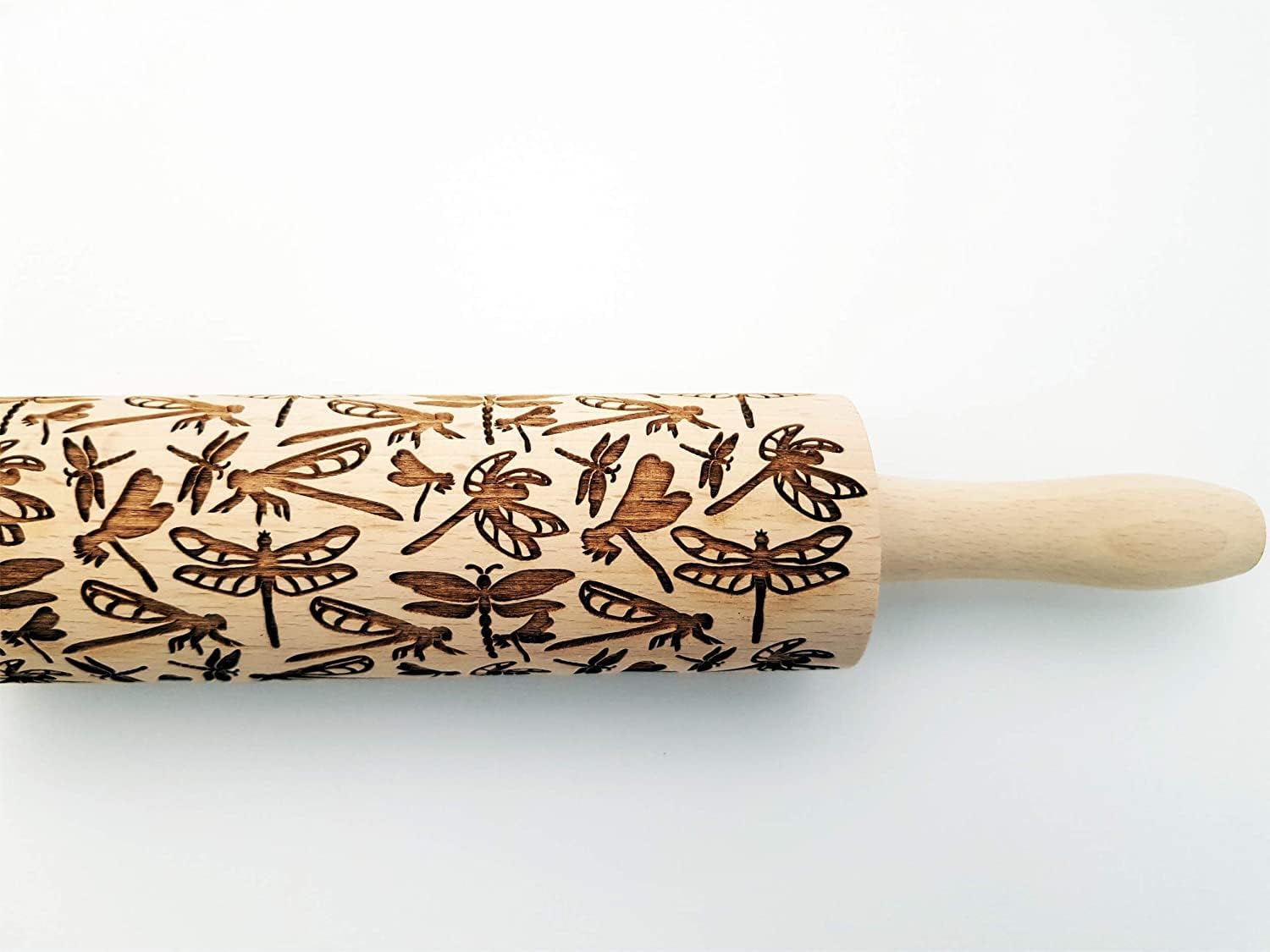 DRAGONFLY EMBOSSING ROLLING PIN WOODEN EMBOSSING ROLLING PIN with DRAGONFLY for EMBOSSED COOKIES GIFT for MOTHER FRIEND