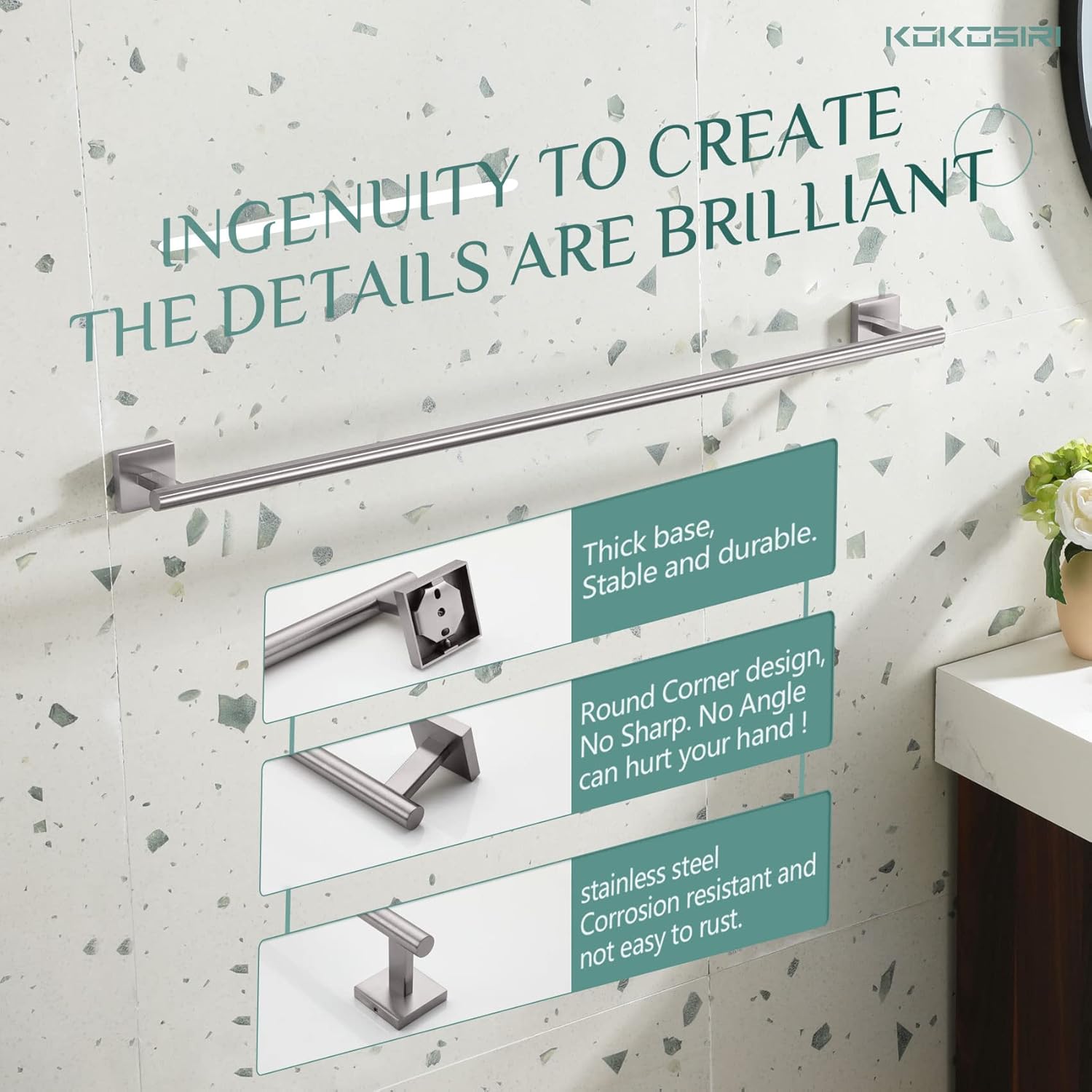 KOKOSIRI Towel Holder Bathroom Accessory Towel Bar for Bath Kitchen Towels Rail 36 Inch Brushed Nickel Stainless Steel B4005BR-L36