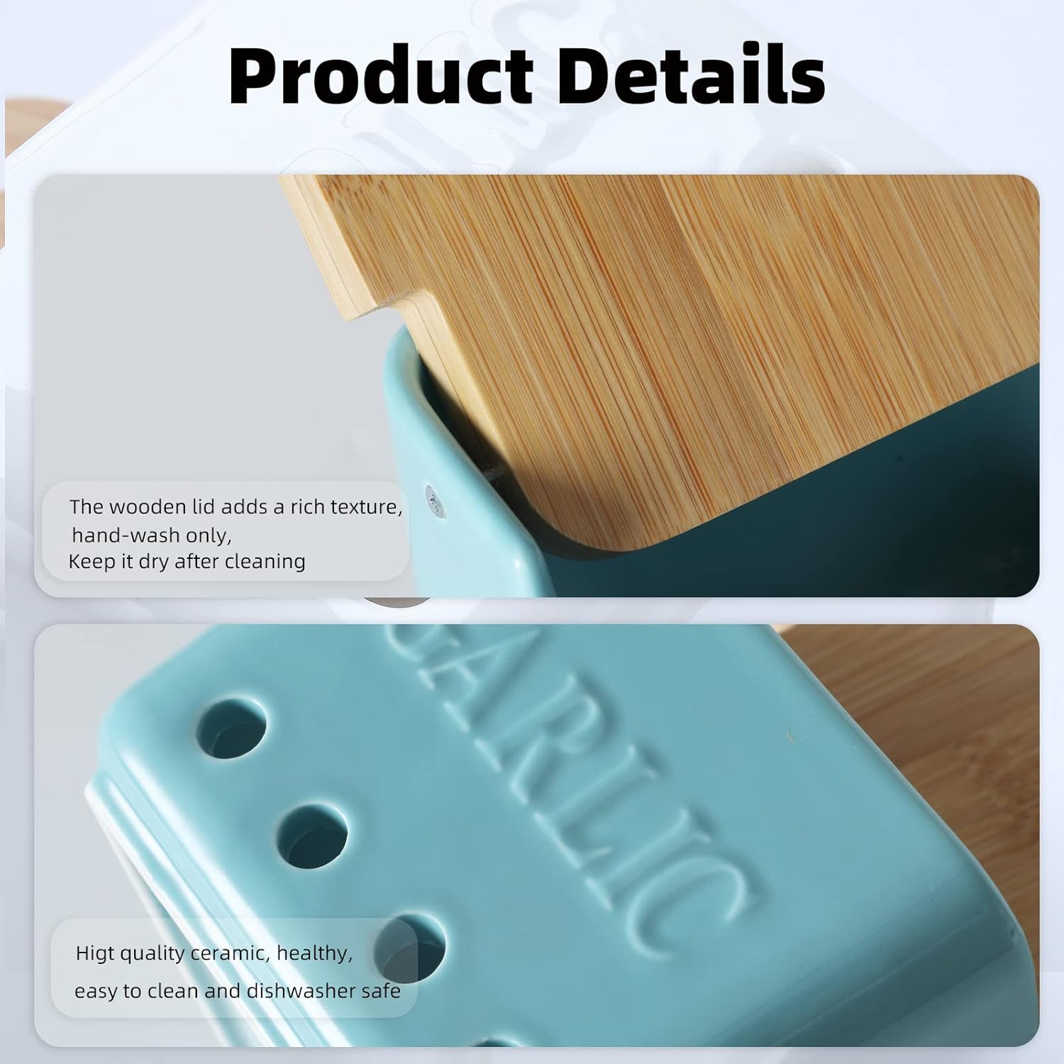 - FASHIONABLE APPEARANCE : There are 4 holes on the porcelain, which can keep the garlic ventilated inside