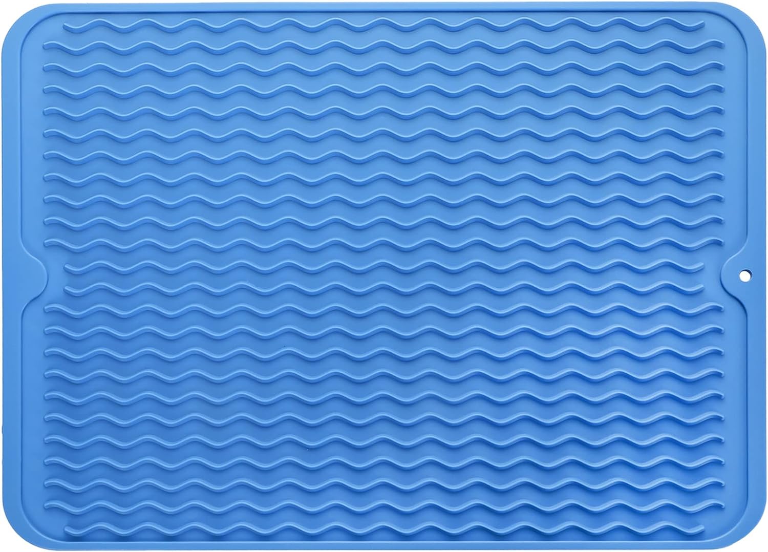 Silicone Dish Drying Mat for Multiple Usage,Easy clean,Eco-friendly,Heat-resistant Silicone Mat for Kitchen Counter or Sink,Refrigerator or drawer liner Lichen BlueL L 16 inches x 12 inches