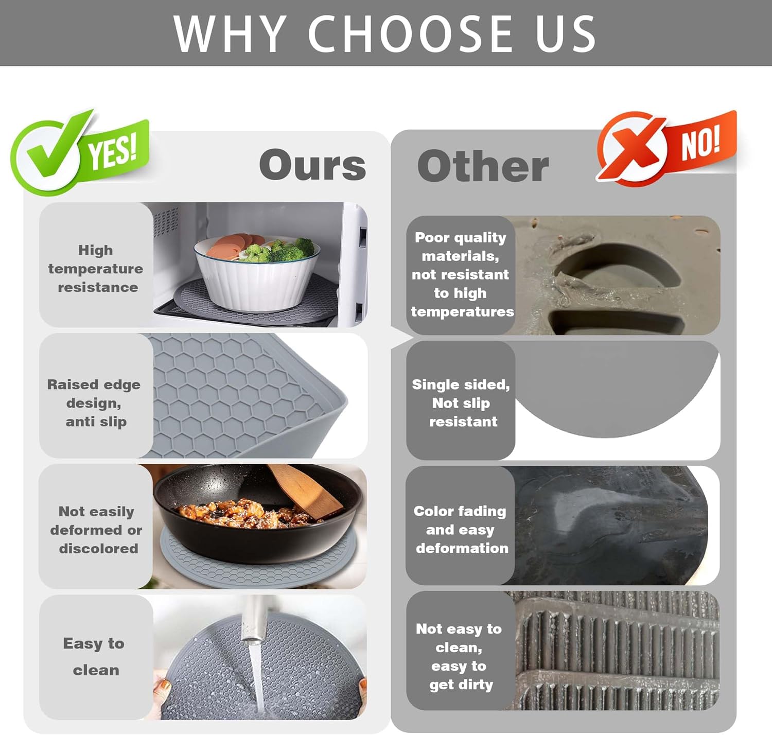 To encounter Silicone Microwave Mat - Round 12" x 12" - Set of 2 Heat Resistant Multifunctional Mat, Splatter Guard, Trivet, Hot Pad, Pot Holder