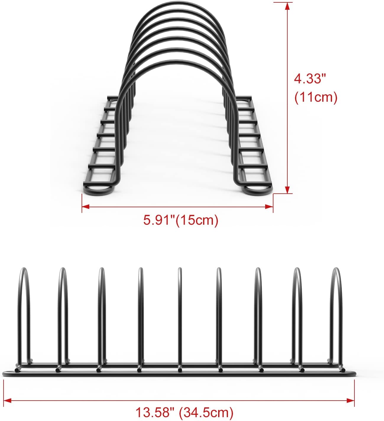 - √ 【Dimensions】The dimension of the pan rack is 13.58" (34.5cm) X 5.91"(15cm) X 4.33"(11cm). 8 slots ( 1.57 " / 4cm) available