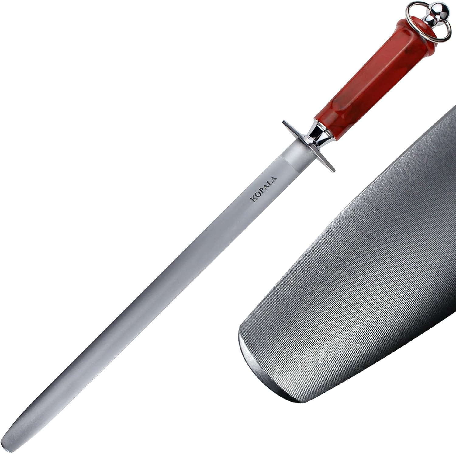 Sharpening Steel Knife Sharpener Rod Flat 12 Inches Honing Steel for Knives Red