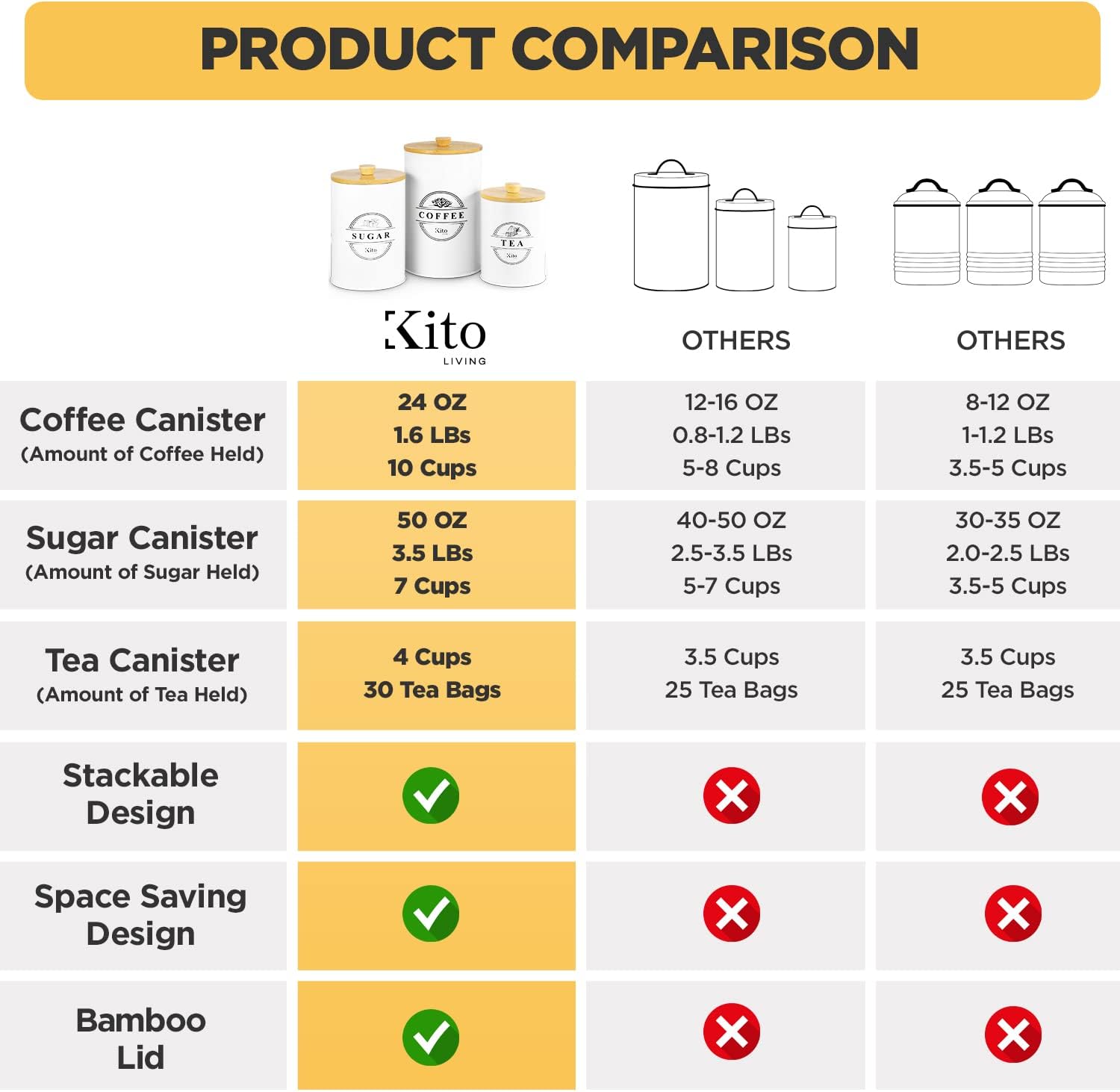 - KEEP FRESHNESS LOCKED IN: Each pack comes with 3 kitchen canisters that will add a rustic aesthetic to your kitchen decor and provide just the right fit for storing Coffee, Sugar, and Tea while keeping them safe, protected, and fresh for longer