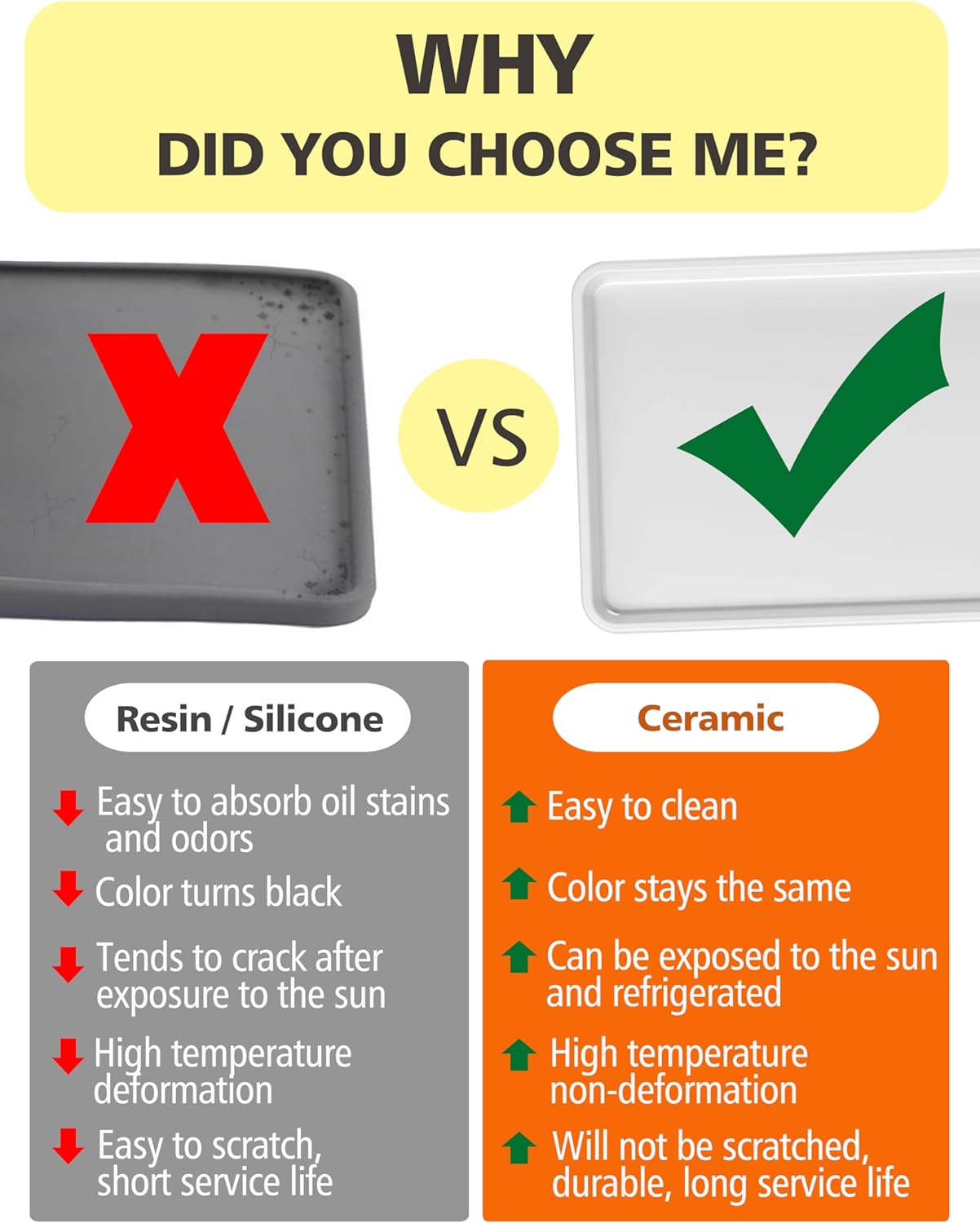 - PREMIUM QUALITY: These small ceramic counter trays for bathroom,kitchen is made of lead-free and non-toxic ceramic,which is stable and durable, Easy to clean and store; Microwave,Freezer,Oven,Dishwasher safe