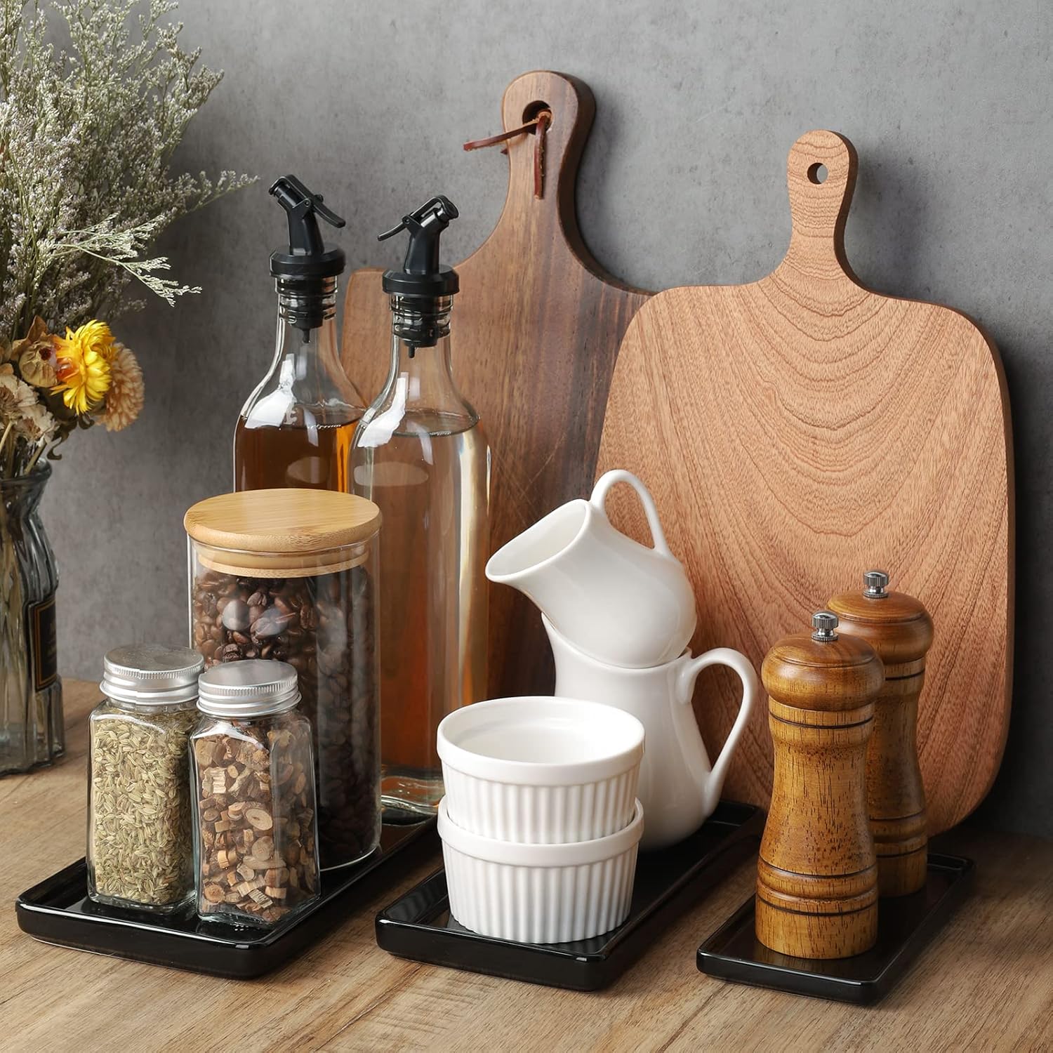 Gurygo 8" Bathroom Trays, Ceramic Vanity Trays for Bathroom, Small Ceramic Tray, Kitchen Soap Tray for Kitchen Counter (Black, 8",Set/1)