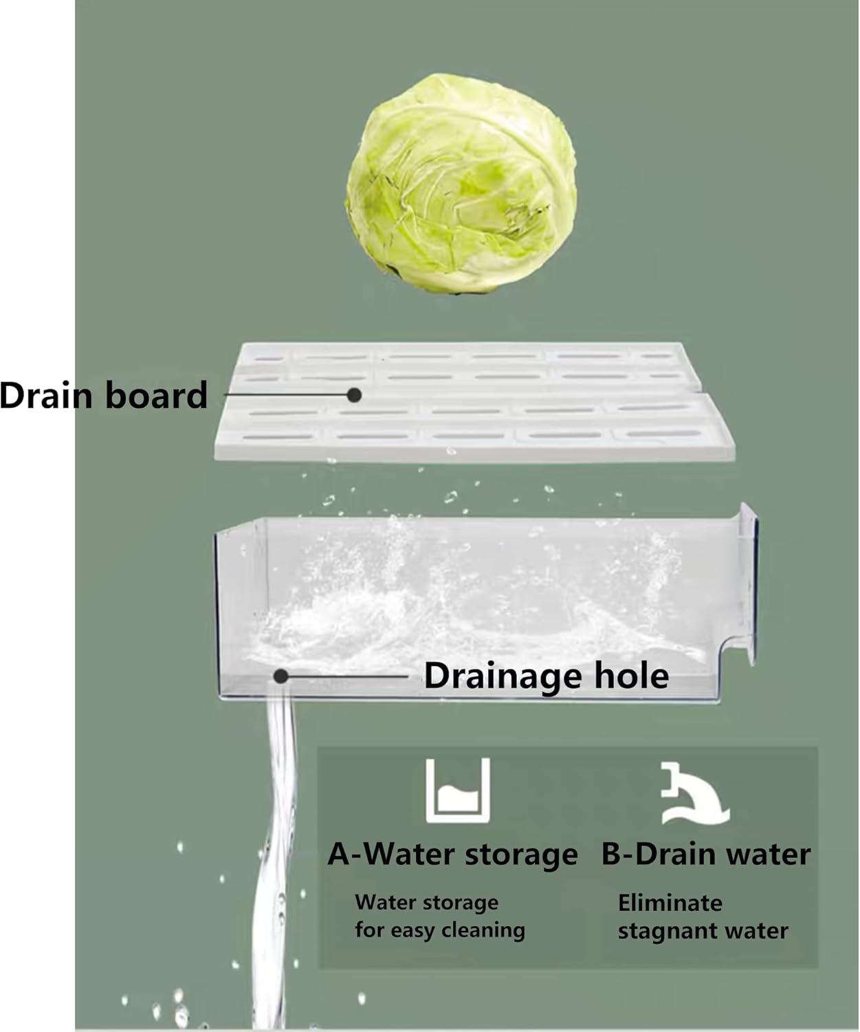- HUMANIZED DESIGN: The drain board at the bottom of the refrigerator organizer bins can filter the excess water in the food, prevent the food from soaking in water, and keep the food fresh. S -shaped comfortable handle and rounded corners. The bottom drainage holes can discharge excess water. The ventilation windows above can be flexibly closed and opened.