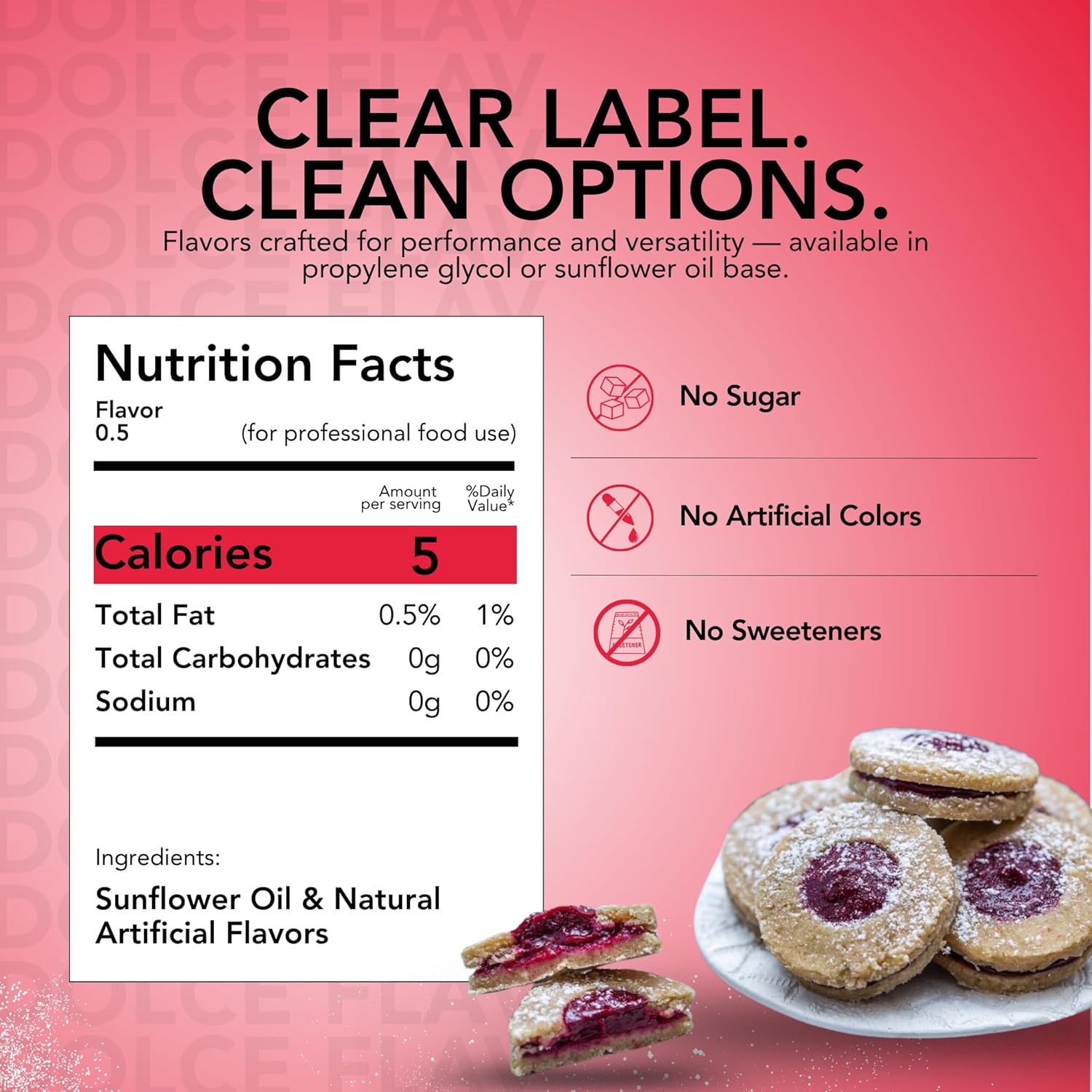 - Pure Raspberry Extract for Baking Delights: Enhance your baked goods with our raspberry flavoring. This essential ingredient is perfect for creating delicious raspberry tarts, muffins, and pastries, adding a rich, fruity burst to your recipes. Ideal for introducing a raspberry twist to all your beloved baking creations.