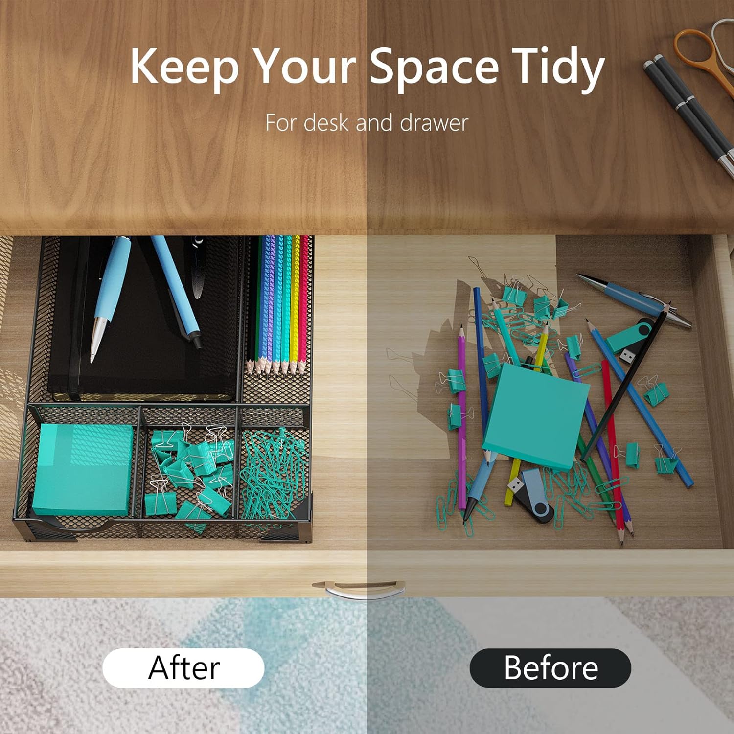 - Multiple Compartments: Features 4 small compartments, which are perfect for storing pens, paper clips, and other small office supplies. Additionally, there is one large compartment that can accommodate notebooks, files, and other larger items.