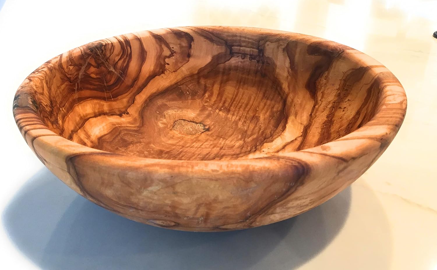 - ✔️ Available in Small (6 inch diameter, 2.4 inch high), Medium (7 x 2.8 inch), Large (8 x 3.2 inch), Extra large (11 x 3.5 inch) and XXL (12 x 4 inch). ALL DIMENSIONS ARE APPROXIMATE. Our olivewood bowls are heavy, approximately 0.6 inch thick. Dimensions, shape and natural flaws vary with each piece due to natural features of the aged olive trees, and because each piece is carved by hand. Photos are examples of the products and not the exact piece sent.