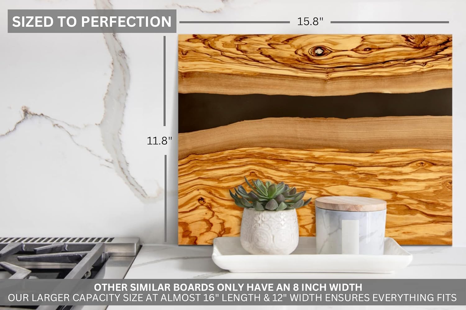 - Only the Finest Materials: What gives this decorative cheeseboard its distinctive charm? It's made of genuine Italian olive wood, famous for rock-hard strength, richly patterned grain, and gorgeous golden hues; Plus, it's adorned with unique resin artwork depicting a beautiful river; Choose from 4 resin colors: Black, Blue, Gray, and White Pearl