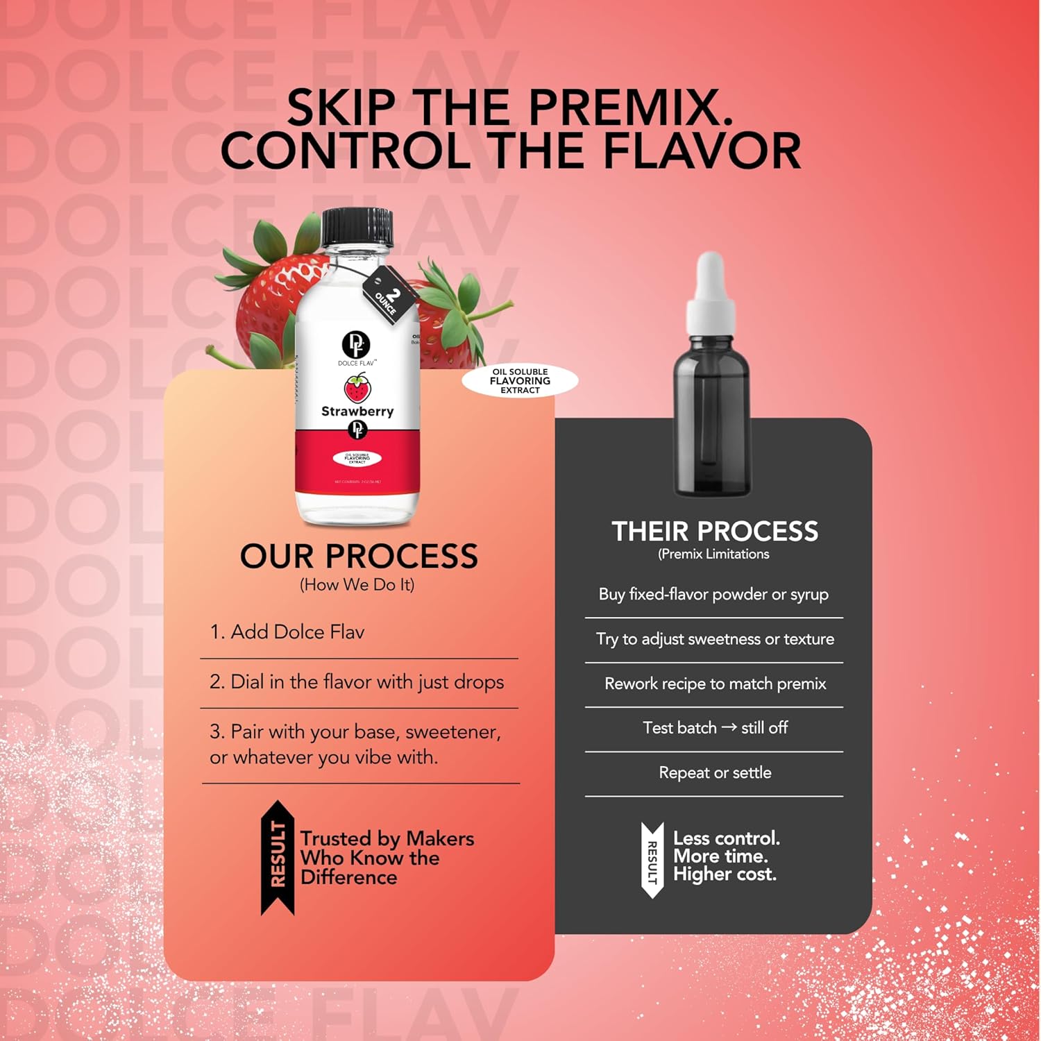 Dolce Flav Strawberry Extract – 2 Ounce Oil-Soluble Kosher, Sugar-Free, Concentrated Berry Flavor for Candy, Chocolates & Desserts, Includes Measured Dropper