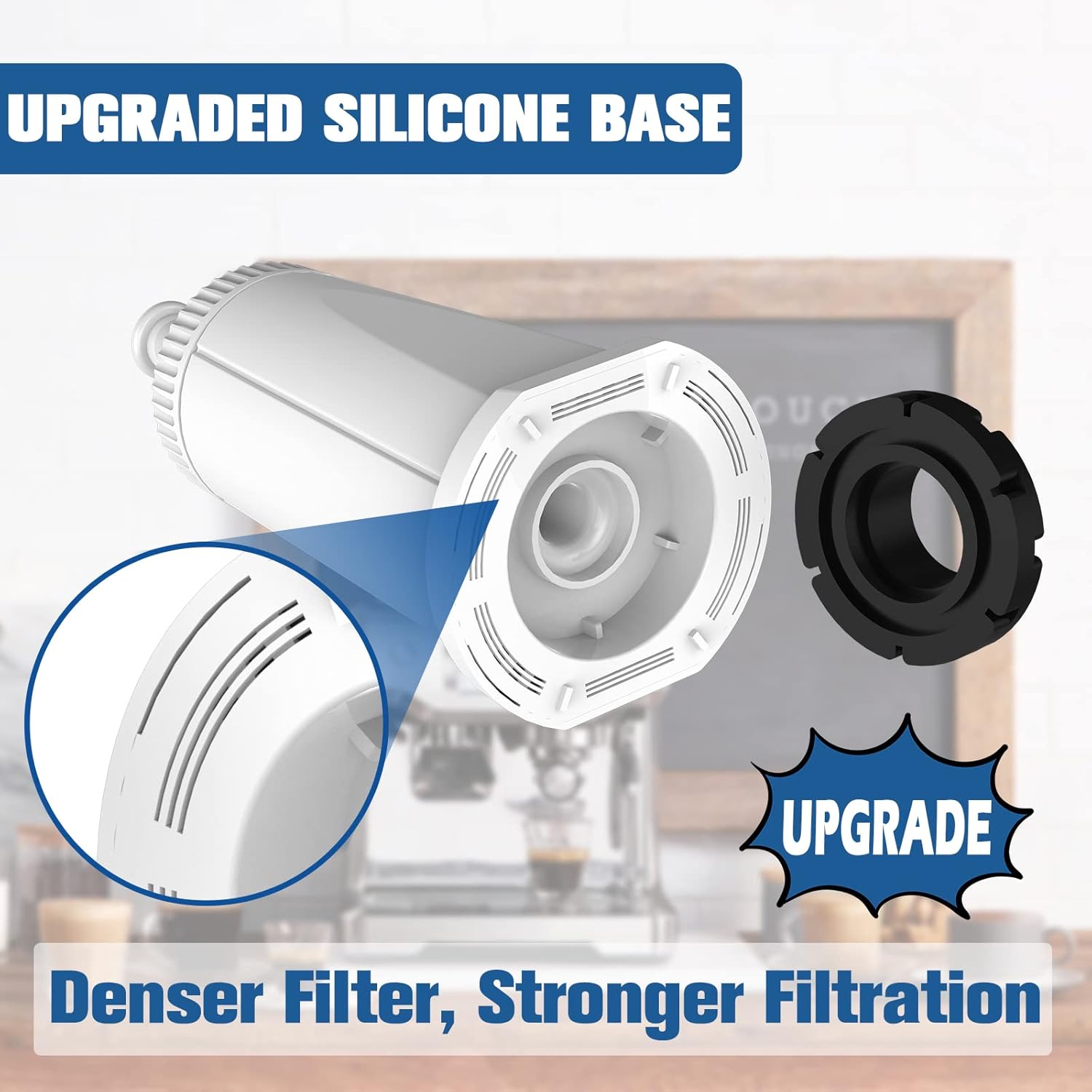 - 𝗡𝗘𝗪 𝗦𝗨𝗣𝗘𝗥 𝗖𝗥𝗔𝗙𝗧 - Enjoy a better coffee experience with Funmit espresso machine water filter for breville. Our espresso machine filter adopts advanced microfiltration technology using coconut activated carbon adsorption and ion exchange to reduce chlorine, heavy metals, and other harmful contaminants while retaining minerals and fluorides to protect your coffee machine. Plus, we added a non-toxic and harmless silicone pad and a finer filter to the base for better performance
