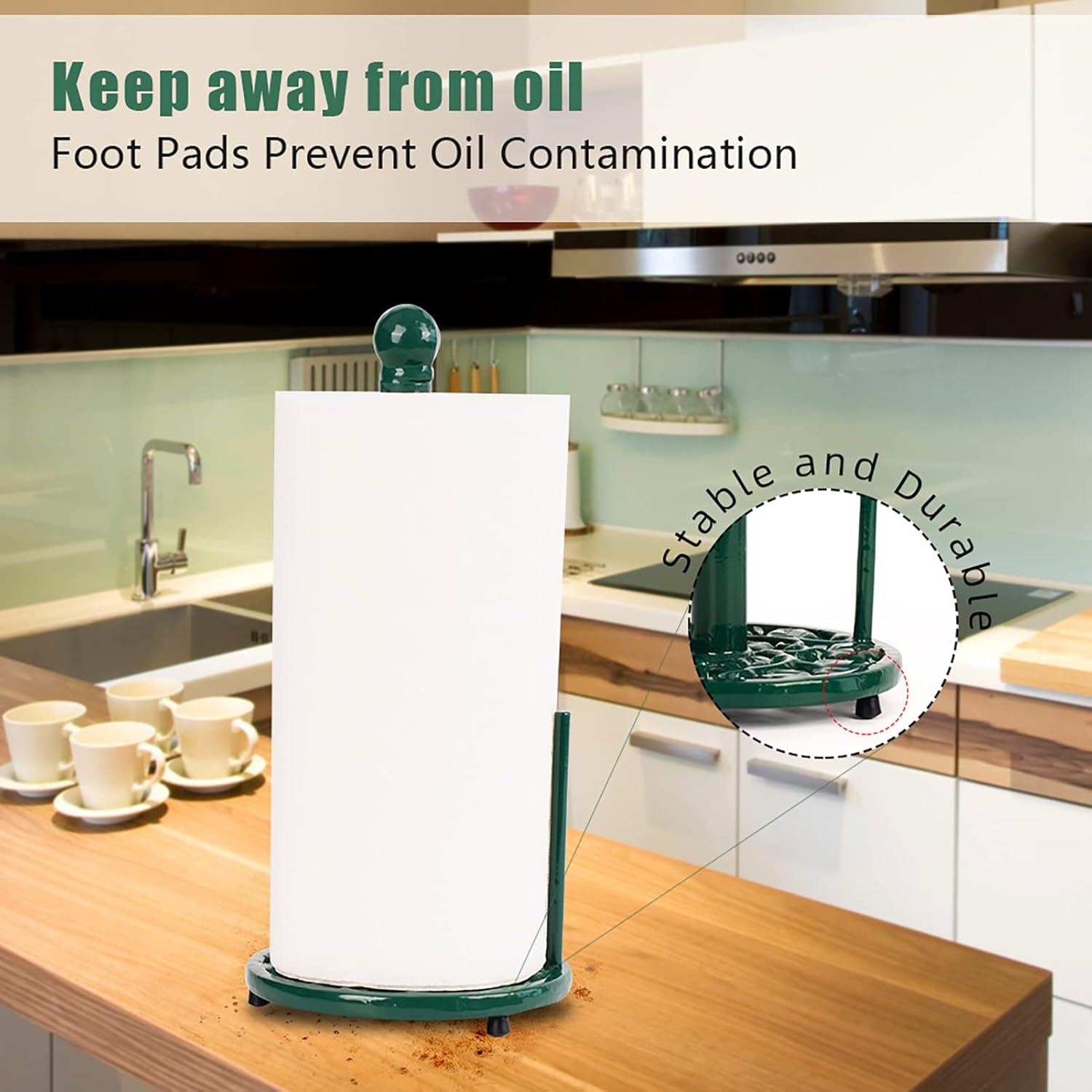 Cast Iron Paper Towel Holder, Vintage Chic Pumpkin Pattern Weighted Base Roll Paper Towel Holder Stand for Kitchen Bathroom Countertops, Green