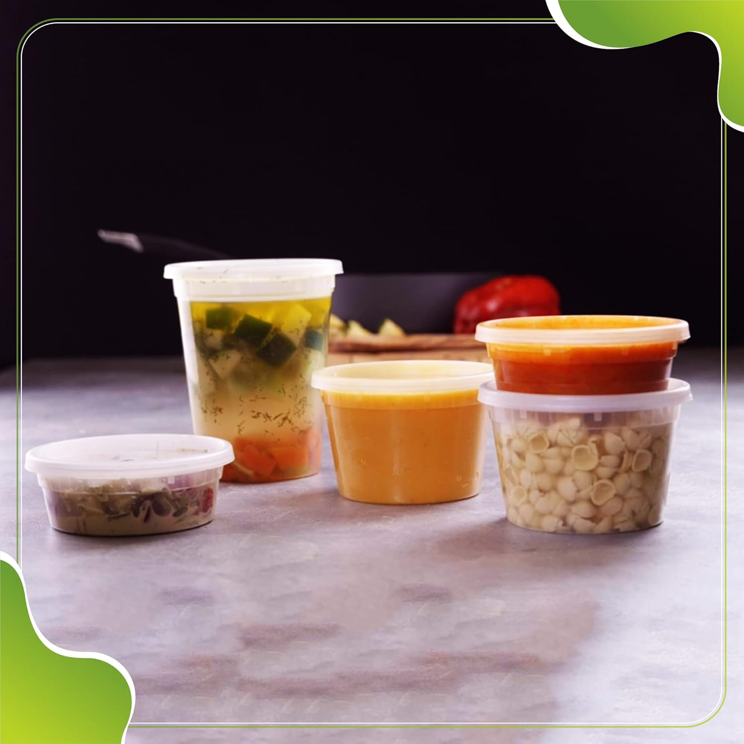 - IDEAL FOR: Dressings, Sauces, Soups, Cookies, Pastries, Desserts, Healthy Snacks, Salads, Appetizers, Baby Food, Fruits, Pasta, etc. Deli containers are great for all of your food storage needs and a must for delis, concession stands, food trucks, cafes, street food vendors, take out services, deliveries, caterings, outdoor picnics and parties, etc.