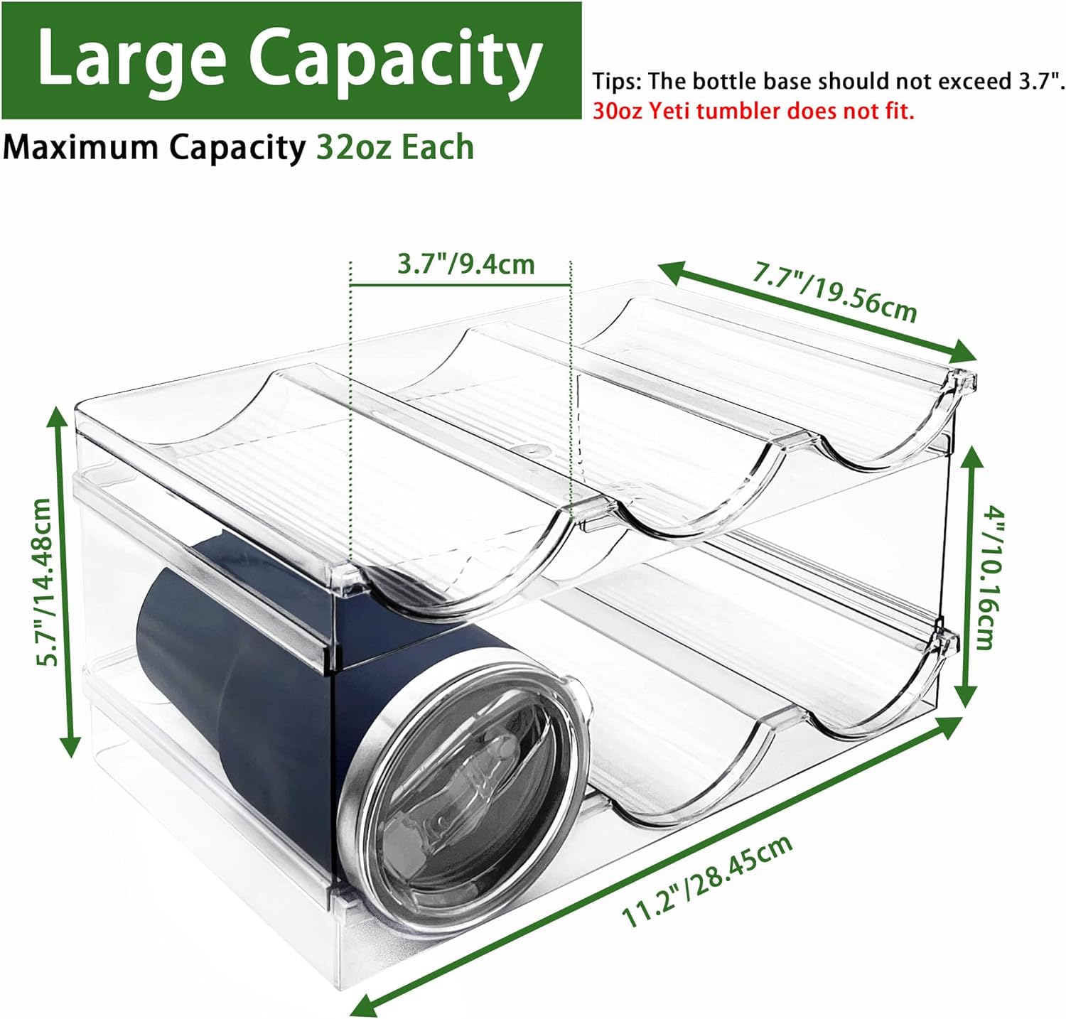 2 Pack Water Bottle Organizer, Stackable Kitchen Pantry Storage Shelf, Plastic Water Bottle Holder for Cabinet and Fridge Organization