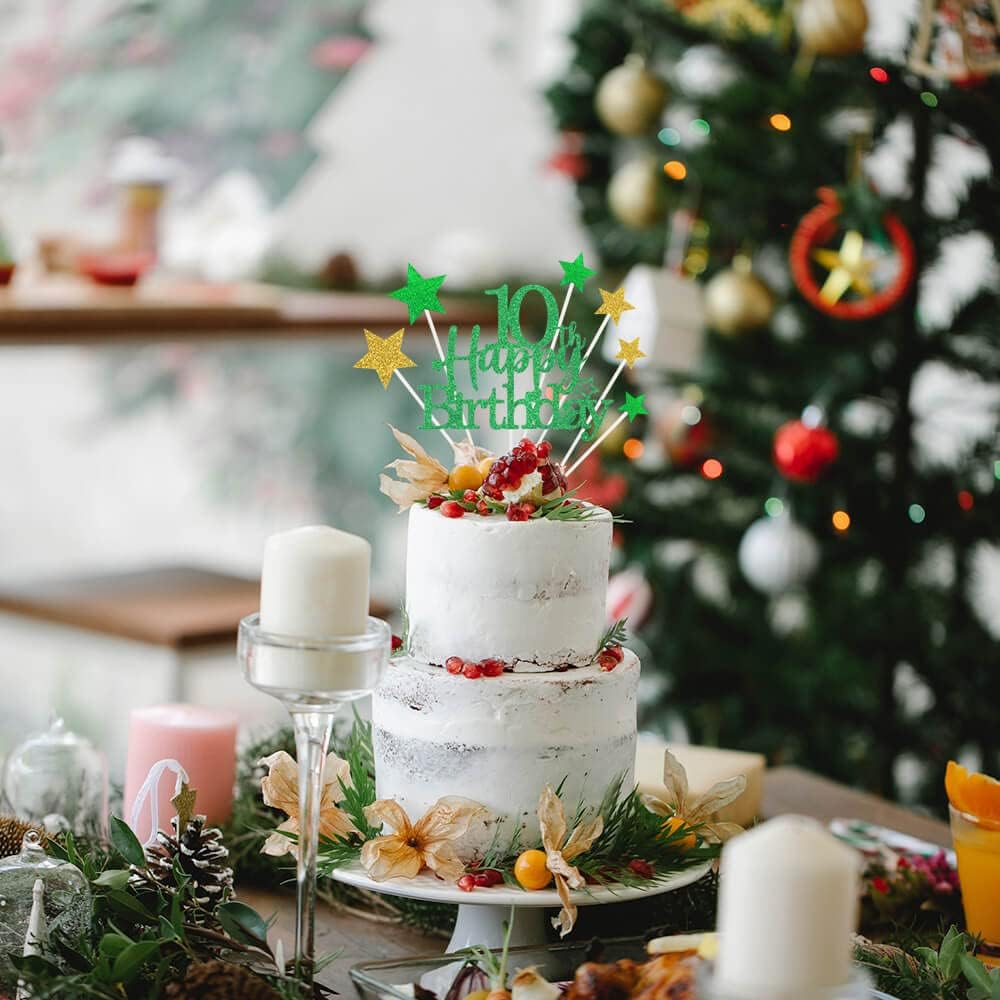 Glittery 10th Happy Birthday Cake Topper with Star,Personalised 10 Birthday Cake Toppers Party Decorations Party Supplies for Boys Girls Green Gold
