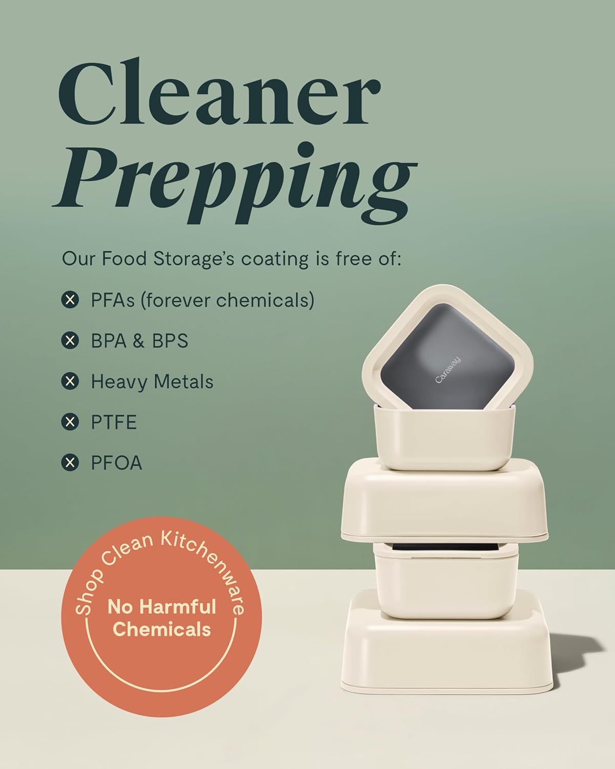 - KEEP YOUR FOOD FRESH: Look forward to leftovers with Caraway’s easy-to-store, non-toxic food storage containers. This 14 piece set looks great and most importantly keeps your food extra fresh and organized.