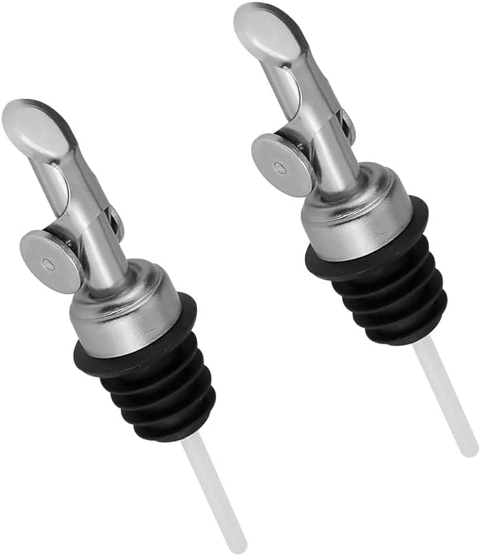MEETSWEET olive oil spout,stainless steel automatic opening and closing spout, leak-proof, for olive oil, vinegar, wine and other liquid bottles (silver) 2pcs