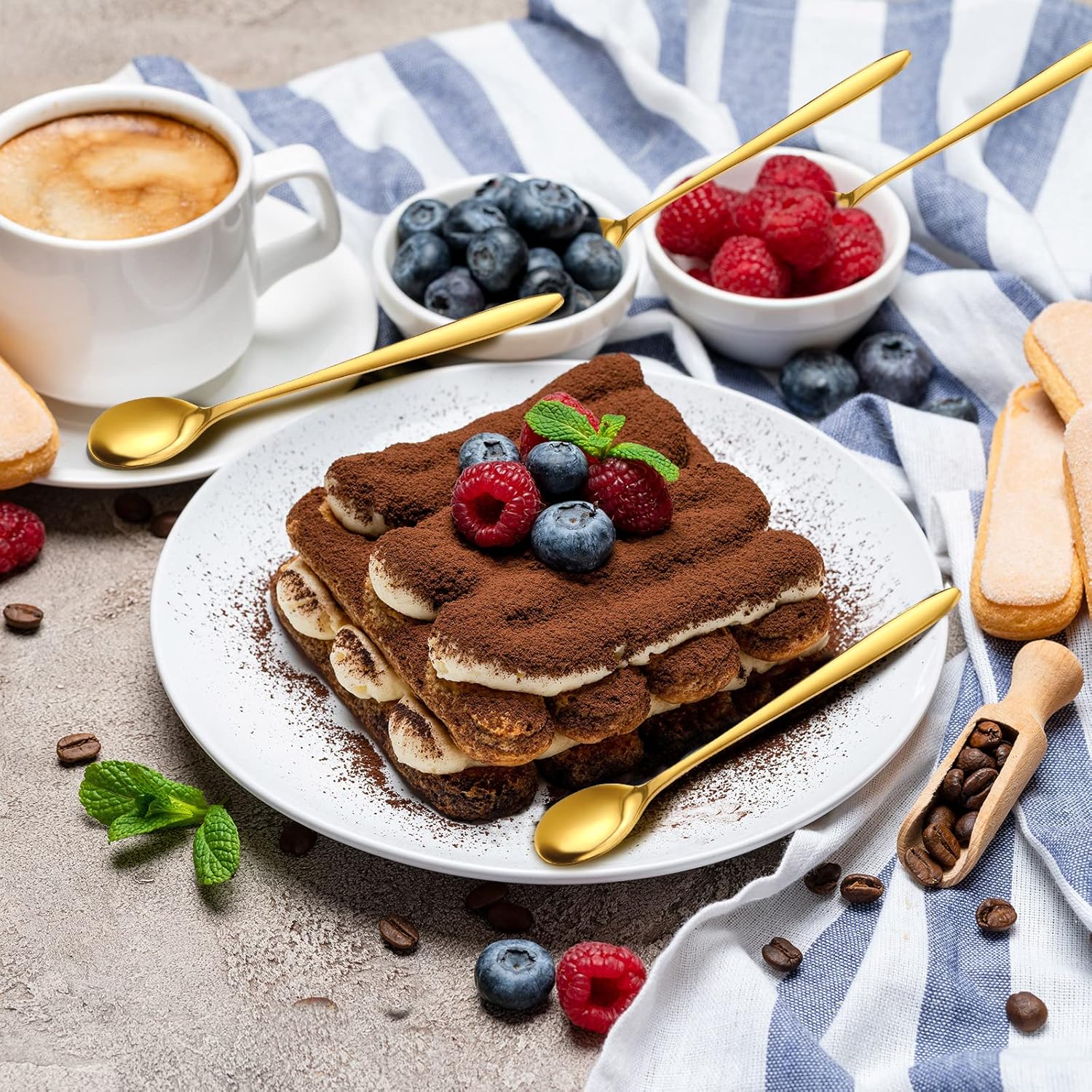- Elegant and Simple Design: the ice cream spoons have mirror finished surface and smooth edge, will not hurt your lips, and the handle with a small curvature is more comfortable to hold; gold color is attractive, can match your other tableware, adding some elegance and class to your dinner table