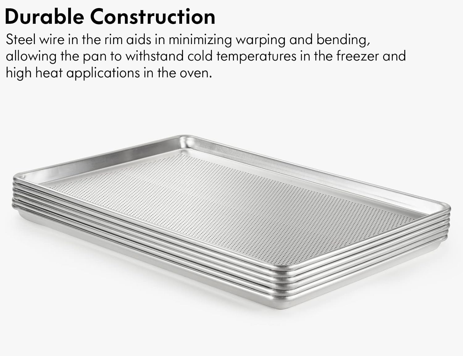 CURTA 6 Pack Aluminum Sheet Pan Perforated, NSF Listed Full Size 26 x 18 inch Commercial Bakery Cake Bun Pan, Baking Tray