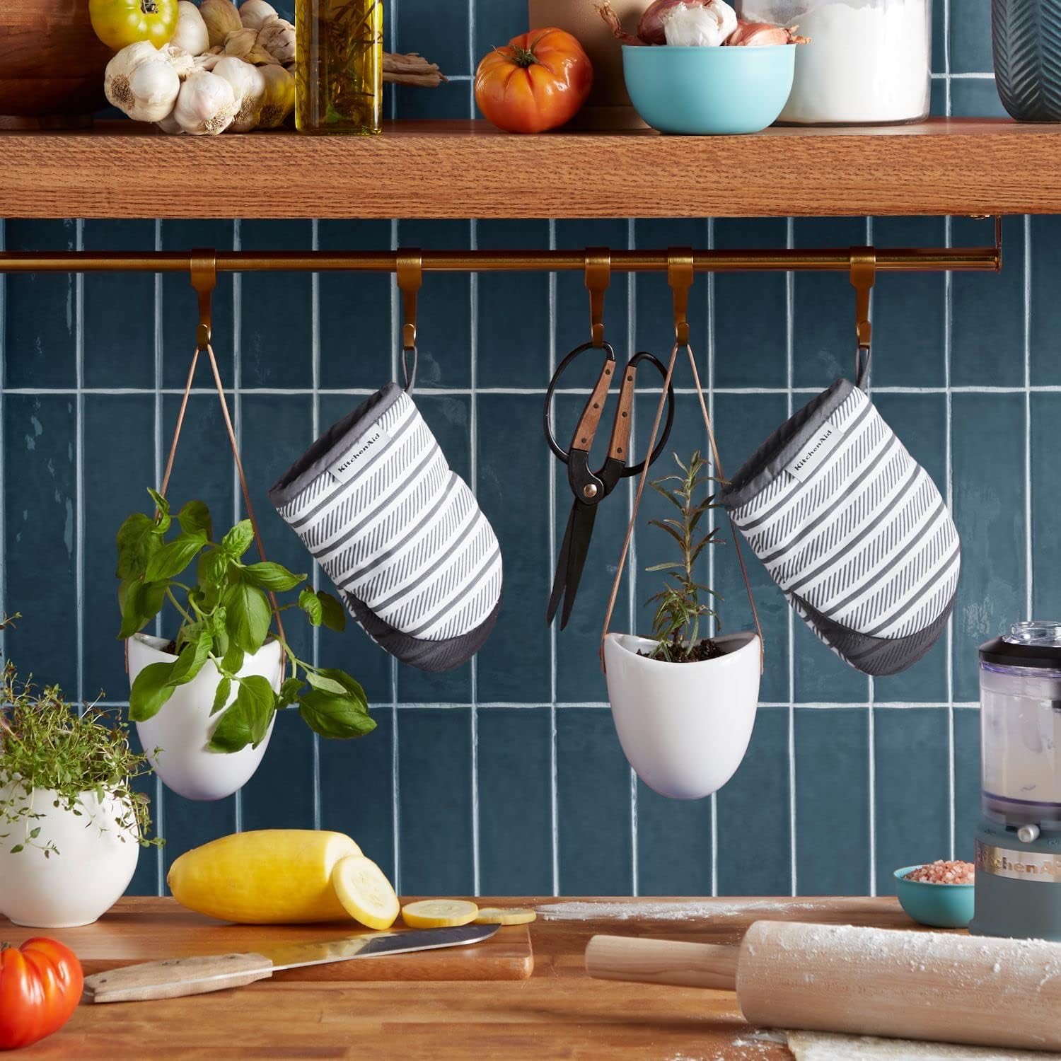 - SET OF TWO: This set includes two (2) KitchenAid Albany Mini Mitts, each measuring 5.5" W x 8" L.