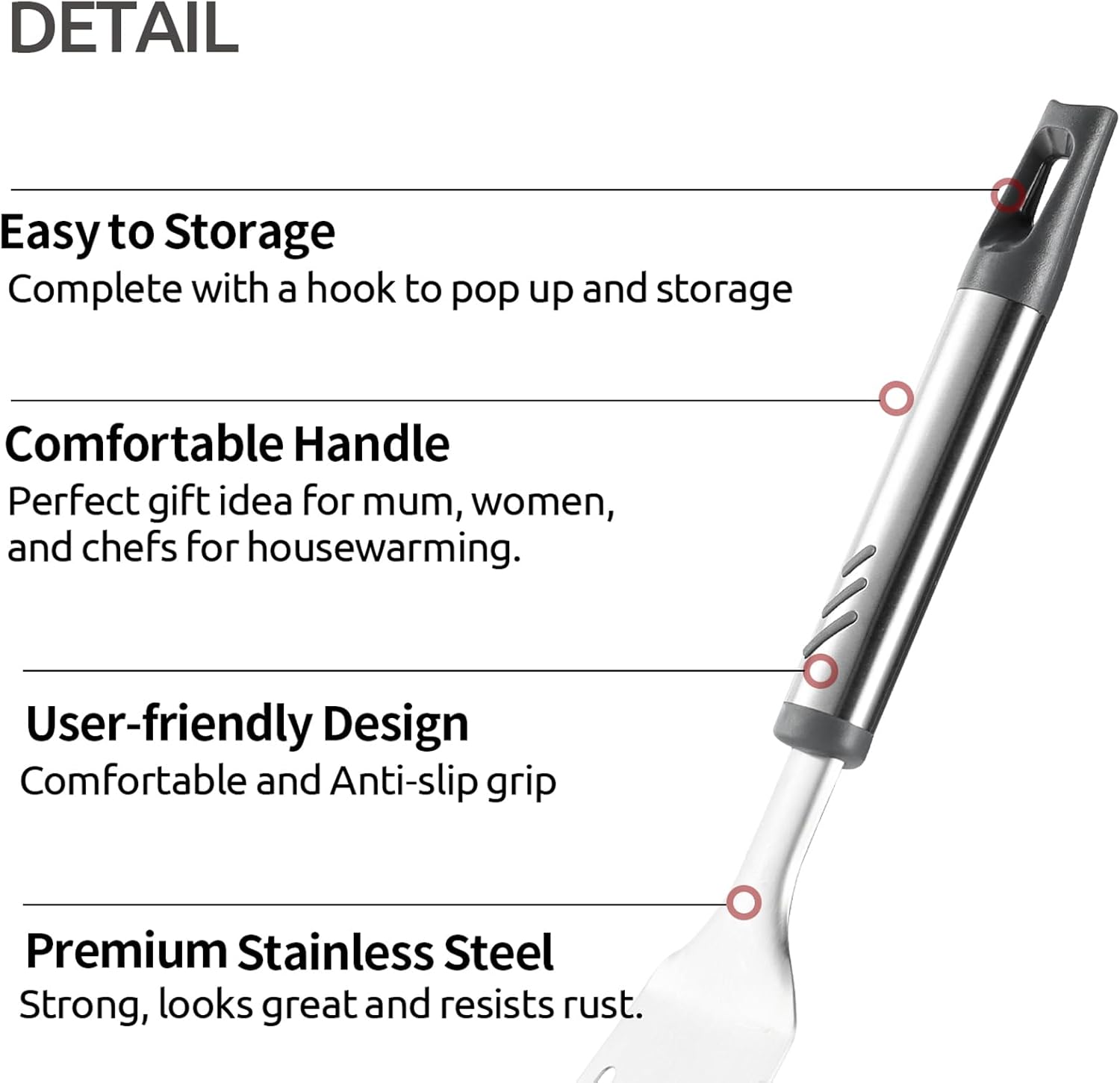 - 【Multi-Function for Kitchen Use】The turner spatula is suitable for most applications in kitchen and outdoor grill, such as frying fish or steak, flipping pancakes, grilling burgers, cooking scrambled eggs or omelette, etc.