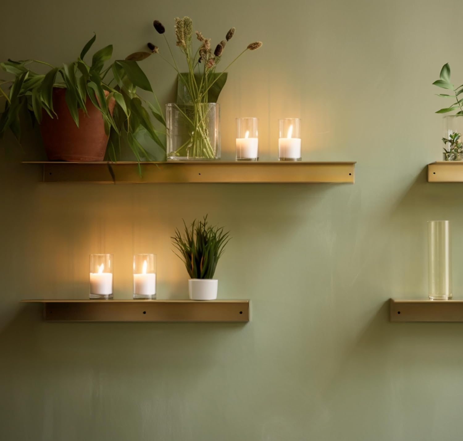 - DIMENSIONS & DETAILS: Measuring 36-inches long x 8-inches in depth, our steel floating shelf is made from 14 gauge raw steel and professionally powder coated gold. The weight of the shelf is 8 LBS. It's perfect for displaying books, plants, bottles, picture ledges, and retail displays
