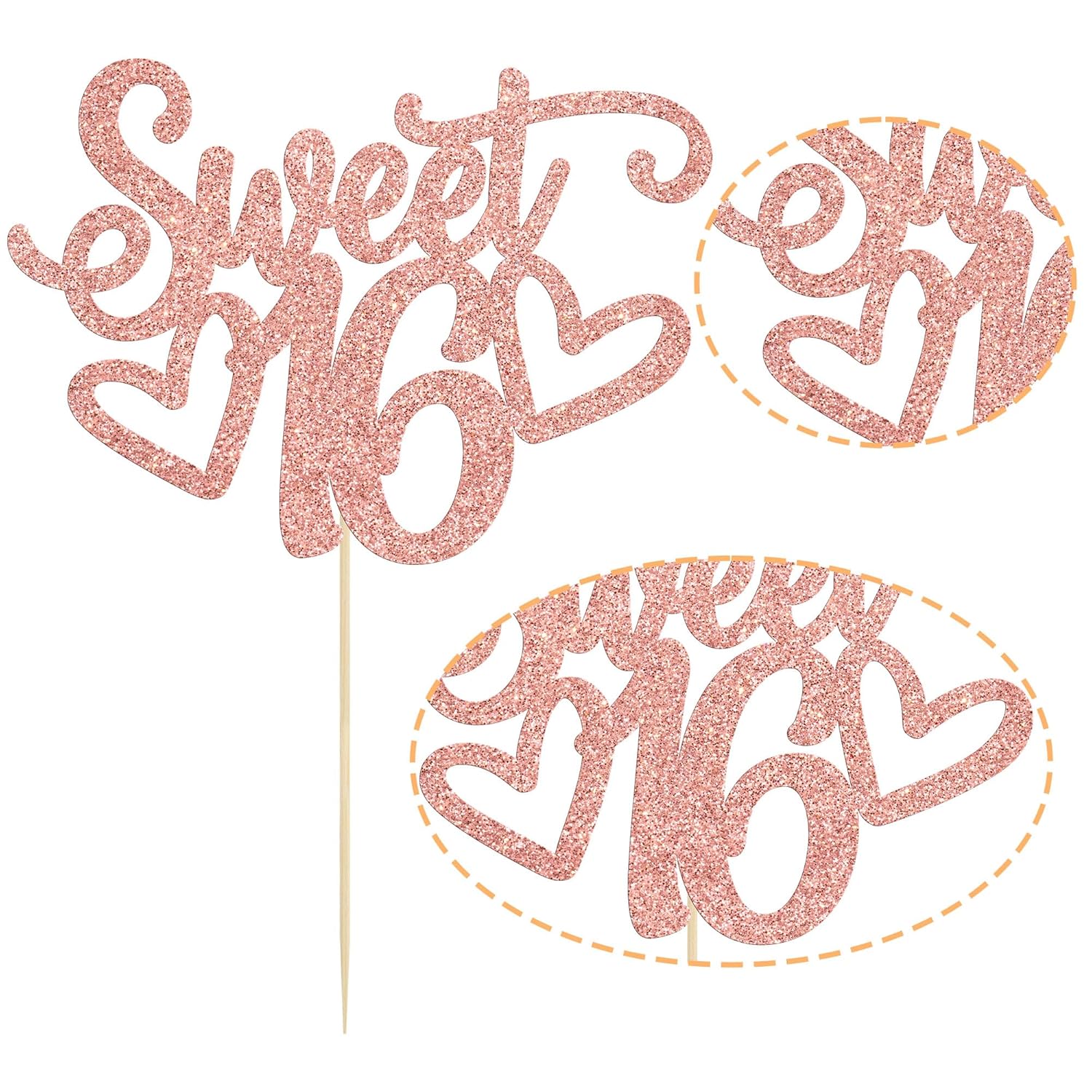 Gyufise 1Pc Sweet Teenager 16 Cake Topper Glitter 16th Birthday Cake Pick for Cheers to 16 Years Old 16th Birthday Party Cake Decorations Supplies Rose Gold
