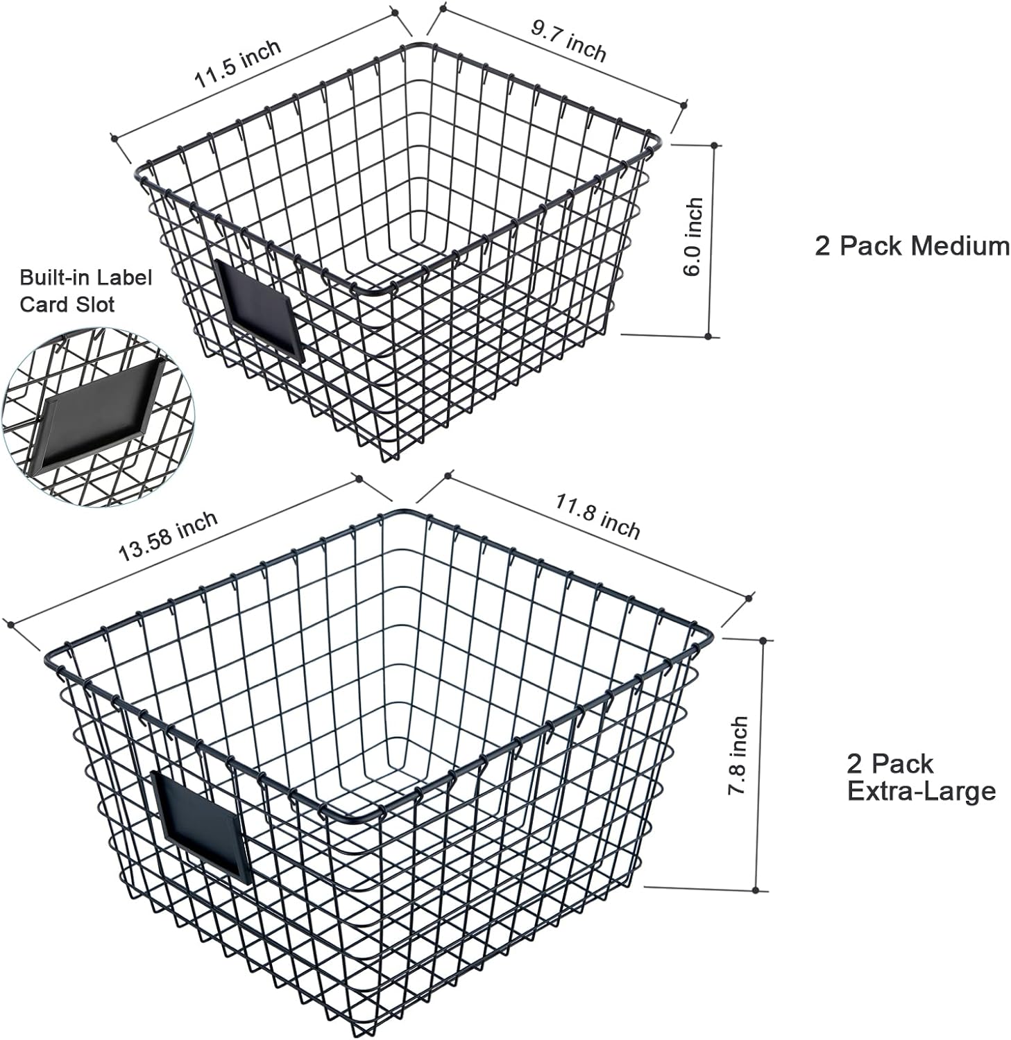 4 Pack【Extra-Large 2+2】 Wire Handmade Storage Basket for Organizing Household Goods,Pantry Organization,Bathroom countertop,Laundry,Wardrobe Storage Basket,Black