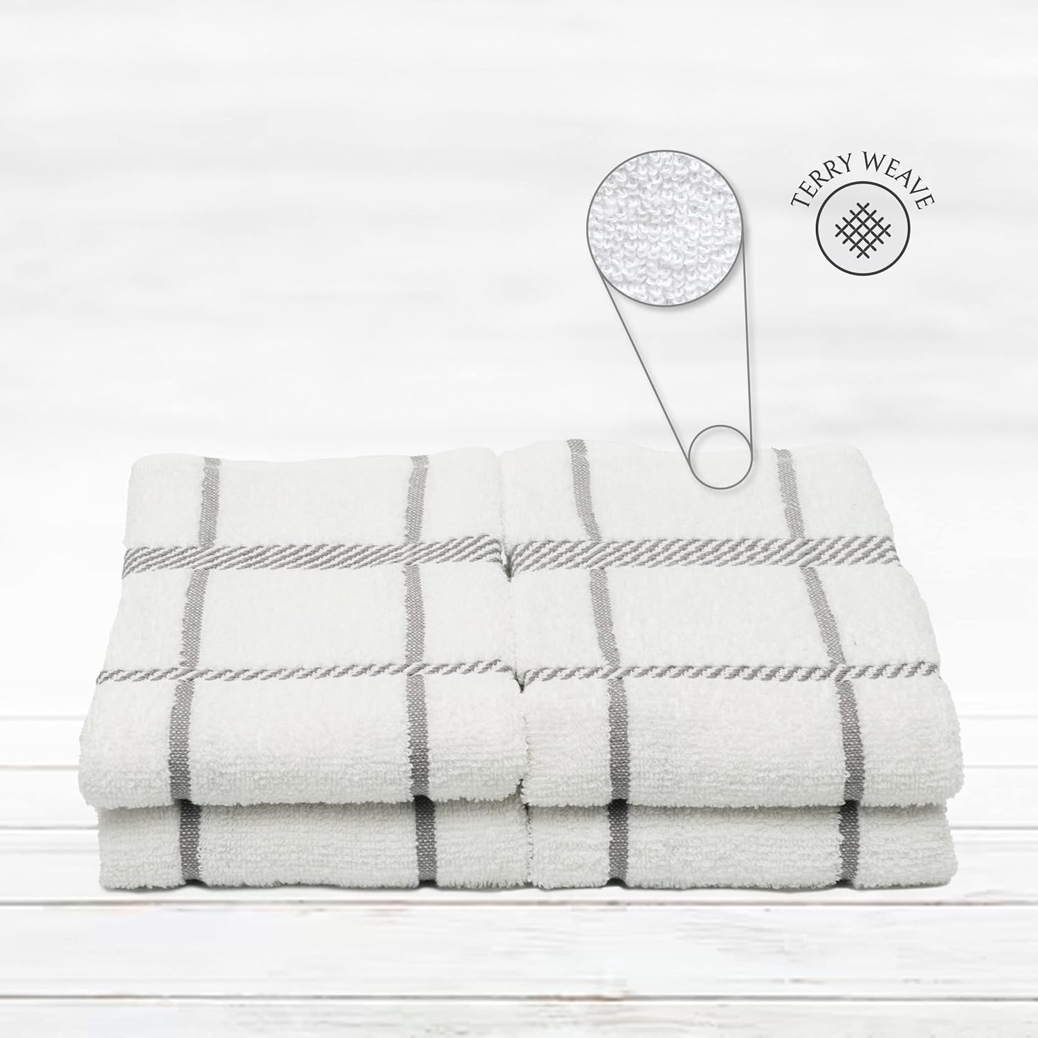 100% Cotton Terry Dish Towels, 4 Pack Checks, 16 x26 Inches, Super Soft and Absorbent Kitchen Towels, Perfect for Kitchen Cleaning and Dish Washing | Light Gray