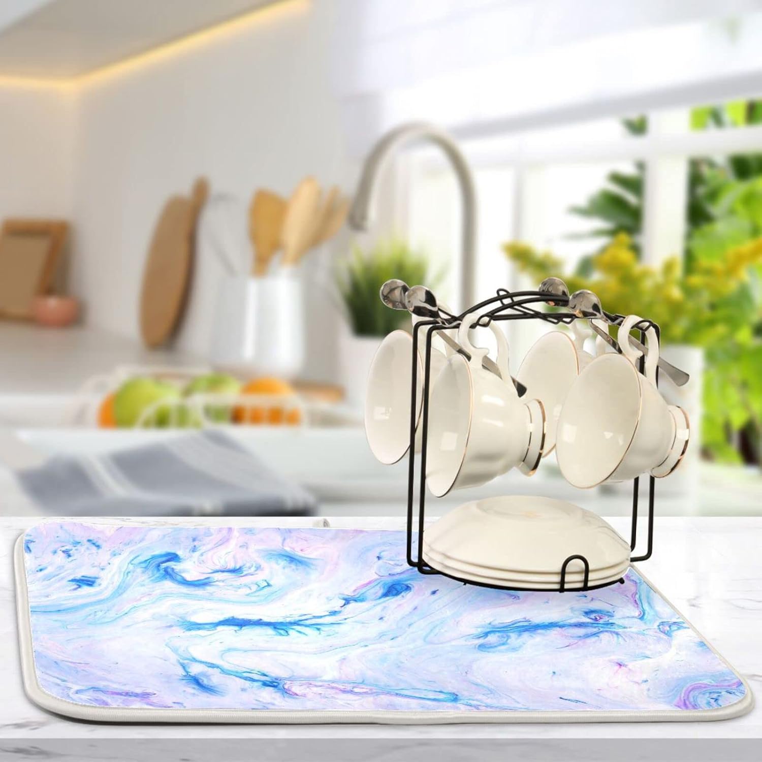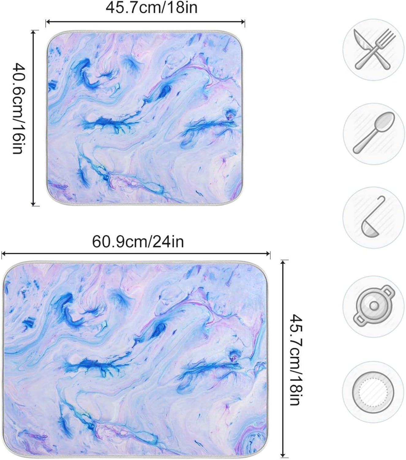 Super Absorbent Dish Drying Mat, Microfiber Fast-Drying Dish Mat, 24" x 18", Kitchen Dish Drying Pad, Marble Blue Pink