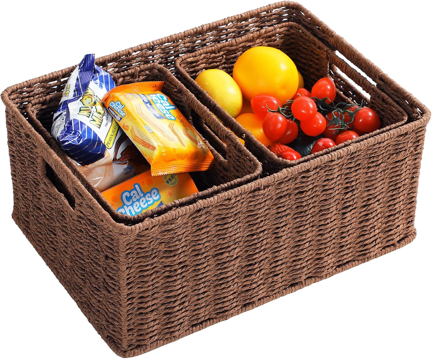 - Durable and Versatile: these pantry baskets are made of a metal wire frame and handwoven twisted paper rope, hand-woven by skilled workers, clean up and organize your home with these rattan-style plastic baskets.