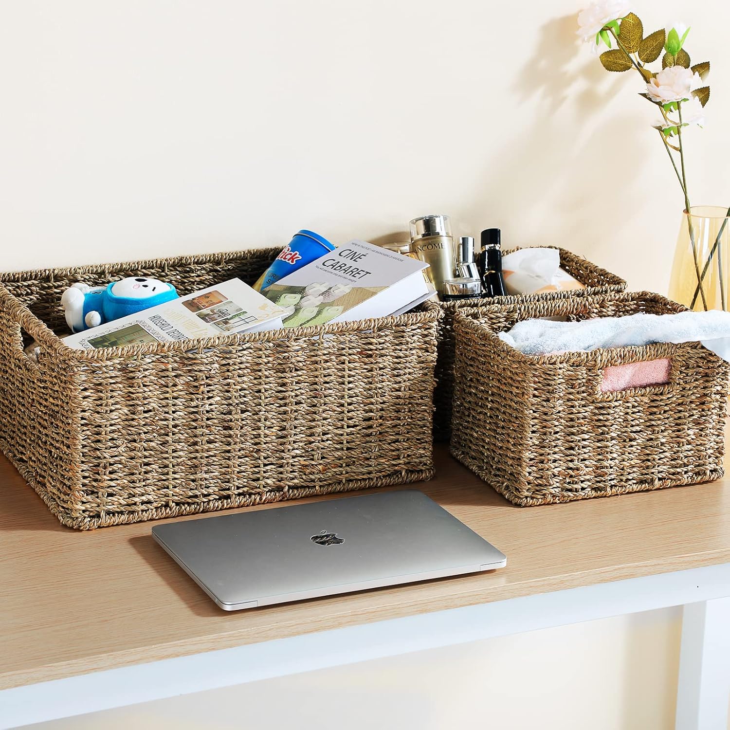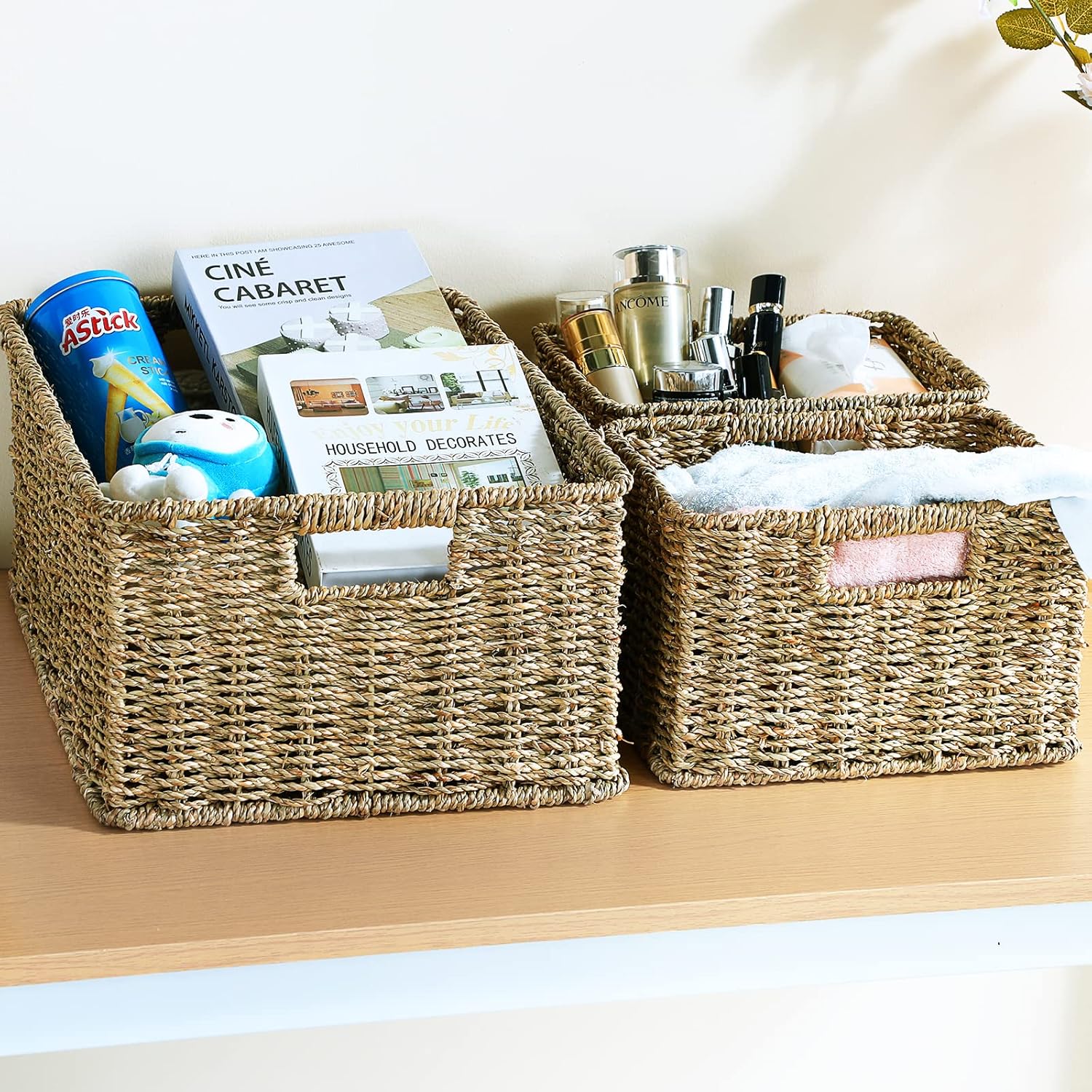 - Natural and Sustainable: these storage baskets for shelves are made of naturally grown seagrass in a woven pattern, the material is natural and friendly to the environment.