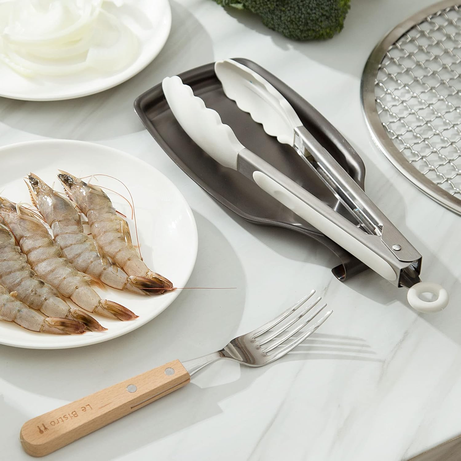 - [Keep Your Countertop Neat] - Suitable for most kitchen utensils, the spoon holder for stove top is suitable for flexible spatula, basting brush, salad servers and slotted spoon, pasta server. Other service purposes like small dessert plate, soap dish, candy holder or ring holder.