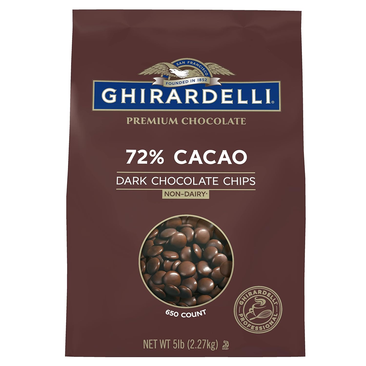 Ghirardelli Chocolate Company 72% Cacao Dark Chocolate Chips, 5lb. Bag (Pack of 2)