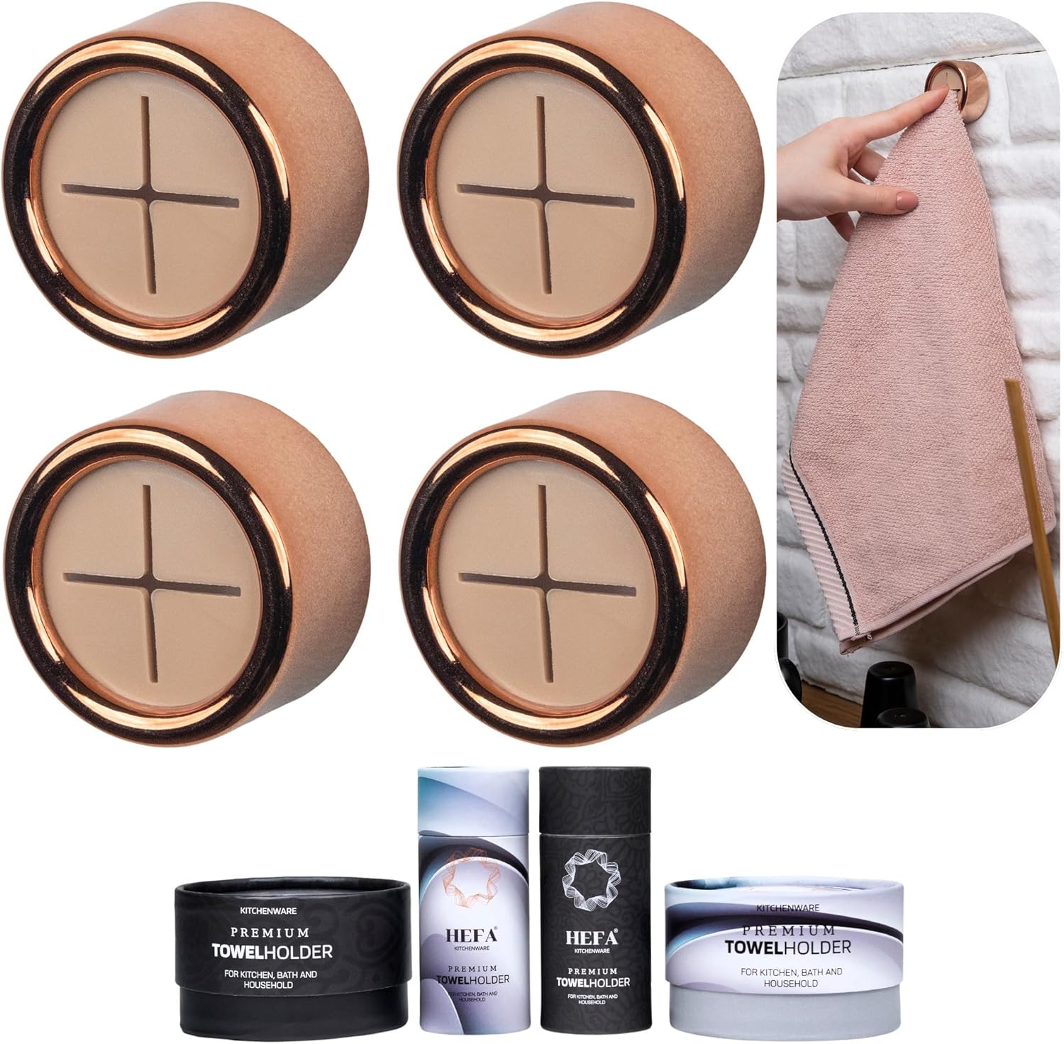 HEFA Towel Holder, Towel Hooks, Dish Towel Holder, Kitchen Organization, Bathroom Accesories, Kitchen Towel Hook, Kitchen Towel Holder, Hand Towel Holder, Kitchen Gadgets 4 Pack, Rose Gold