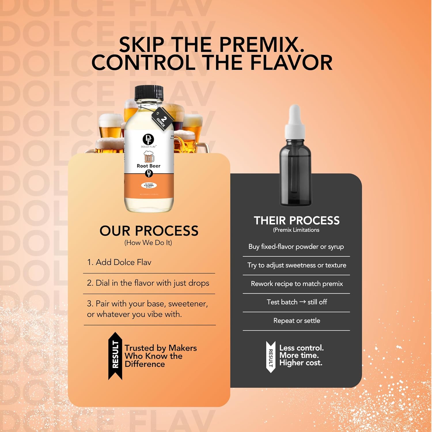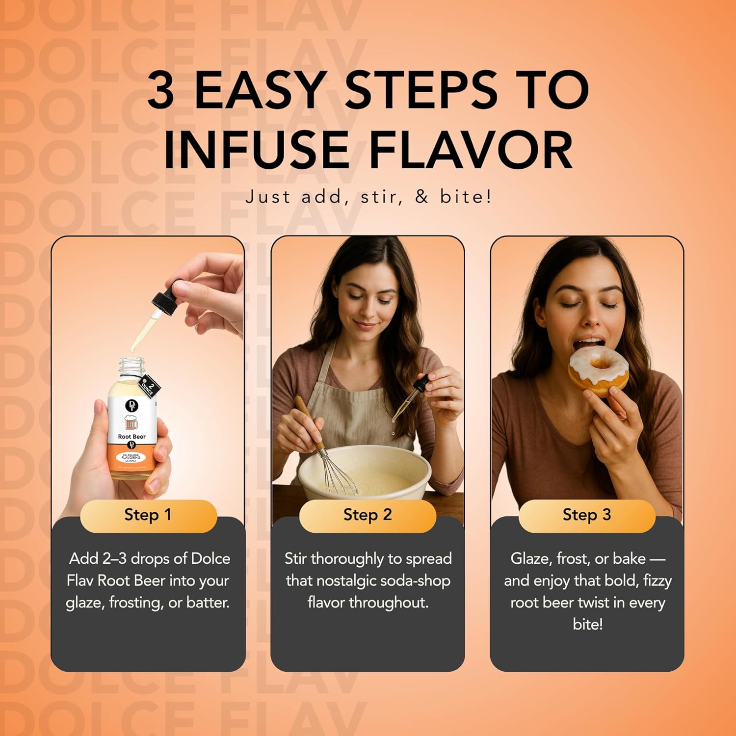 Dolce Flav Root Beer Extract – 2 Ounce Oil-Soluble Kosher, Sugar-Free, Concentrated Classic Root Beer Flavoring for Baking, Chocolates & Desserts, Includes Measured Dropper