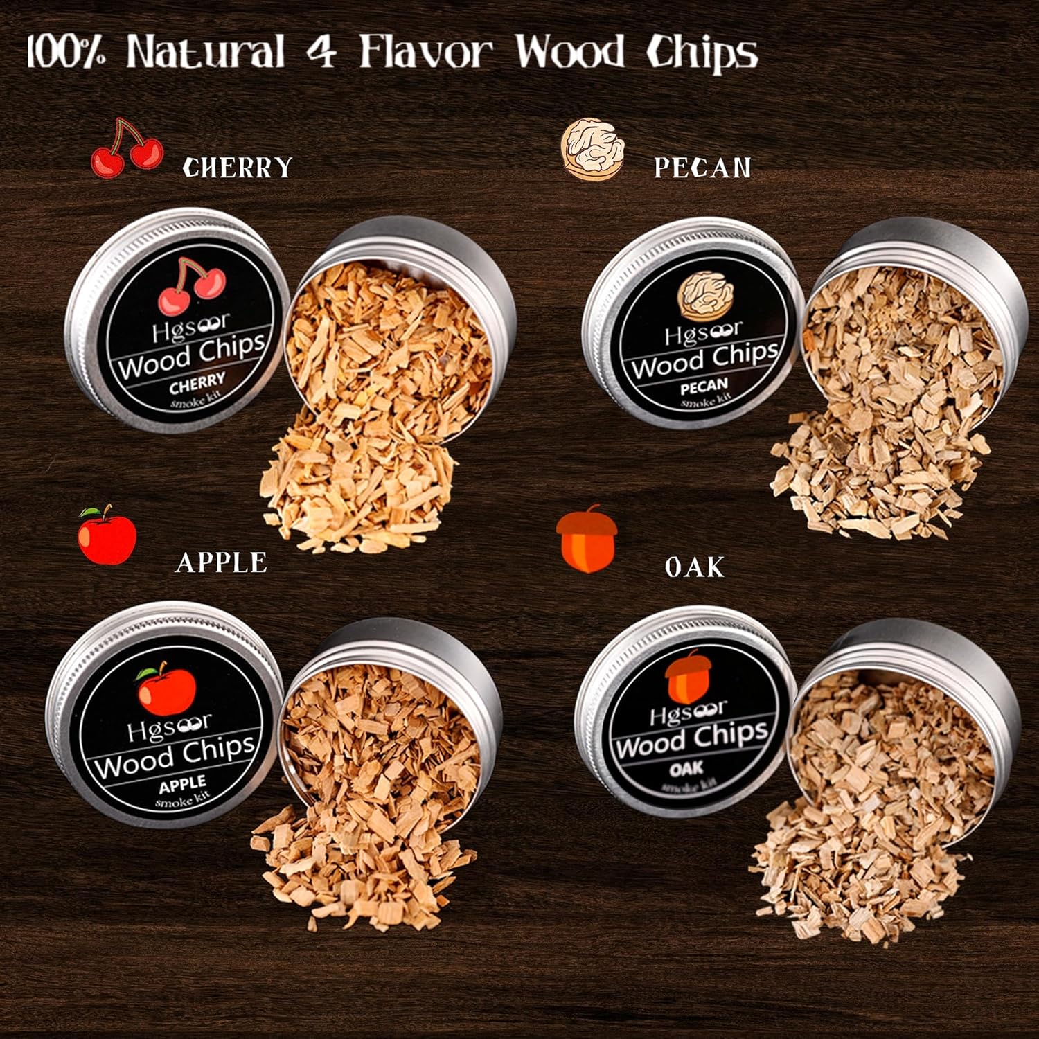 - đ„ ăCOMPLETE BOURBON SMOKER KITăBourbon smoker kit with torch is cool bourbon gifts for men, it with exquisite design and delicate packaging,includes 1 bourbon smoker with a lid,1 premium gold metal torch,4 natural wood chips-Pecan, Oak, Apple and Cherry,4 gold stainless steel ice cubes and a high quality wooden gift box,11pcs complete whiskey smoking kit.NO BUTANE INCLUDED