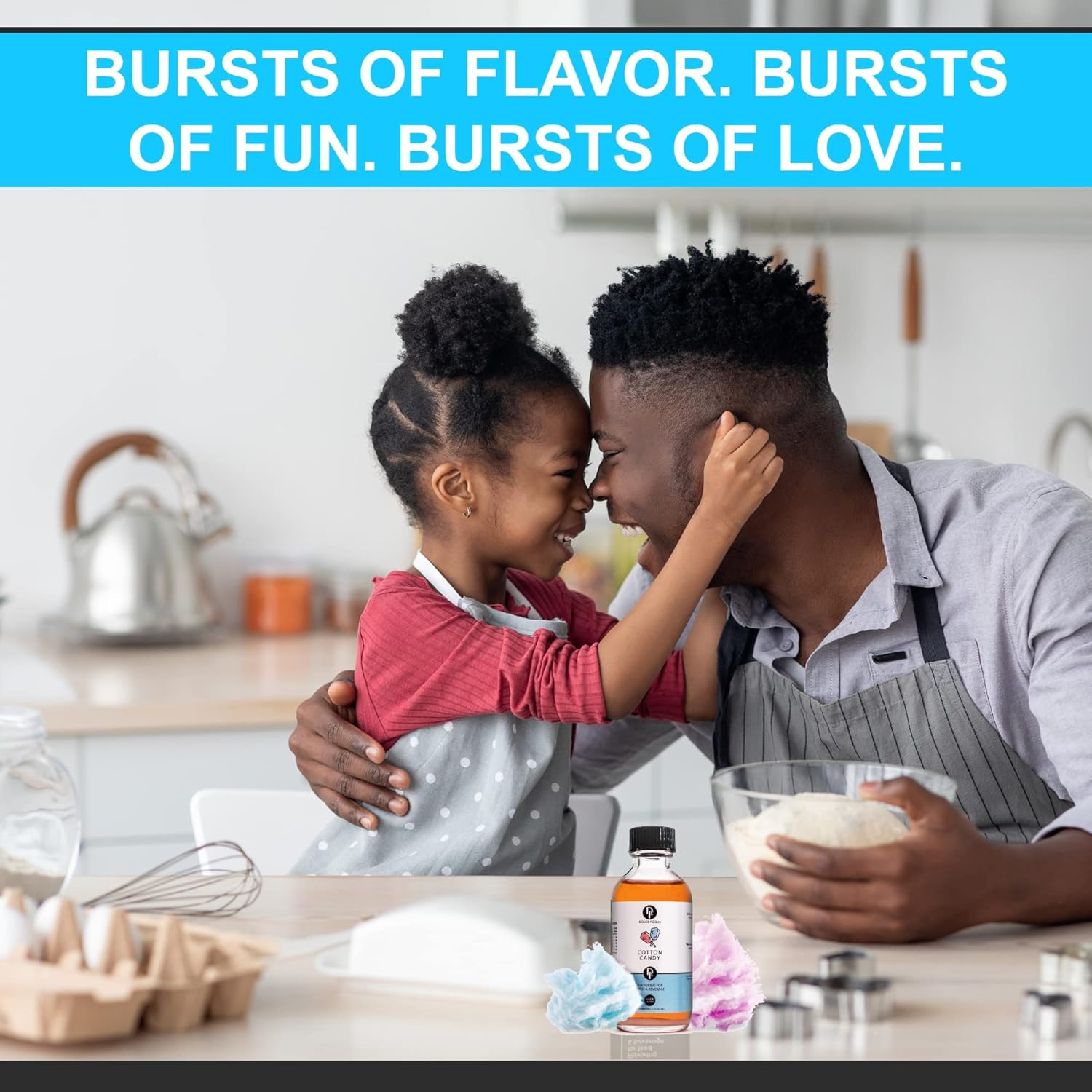 - Versatile and Multi-Purpose – Our cotton candy flavoring is suitable for use in both food and non-food products or even to mask unpleasant flavors and odors. Add it to everything, from baking and beverages to soaps and scrubs, creating a cotton candy-scented world around you.