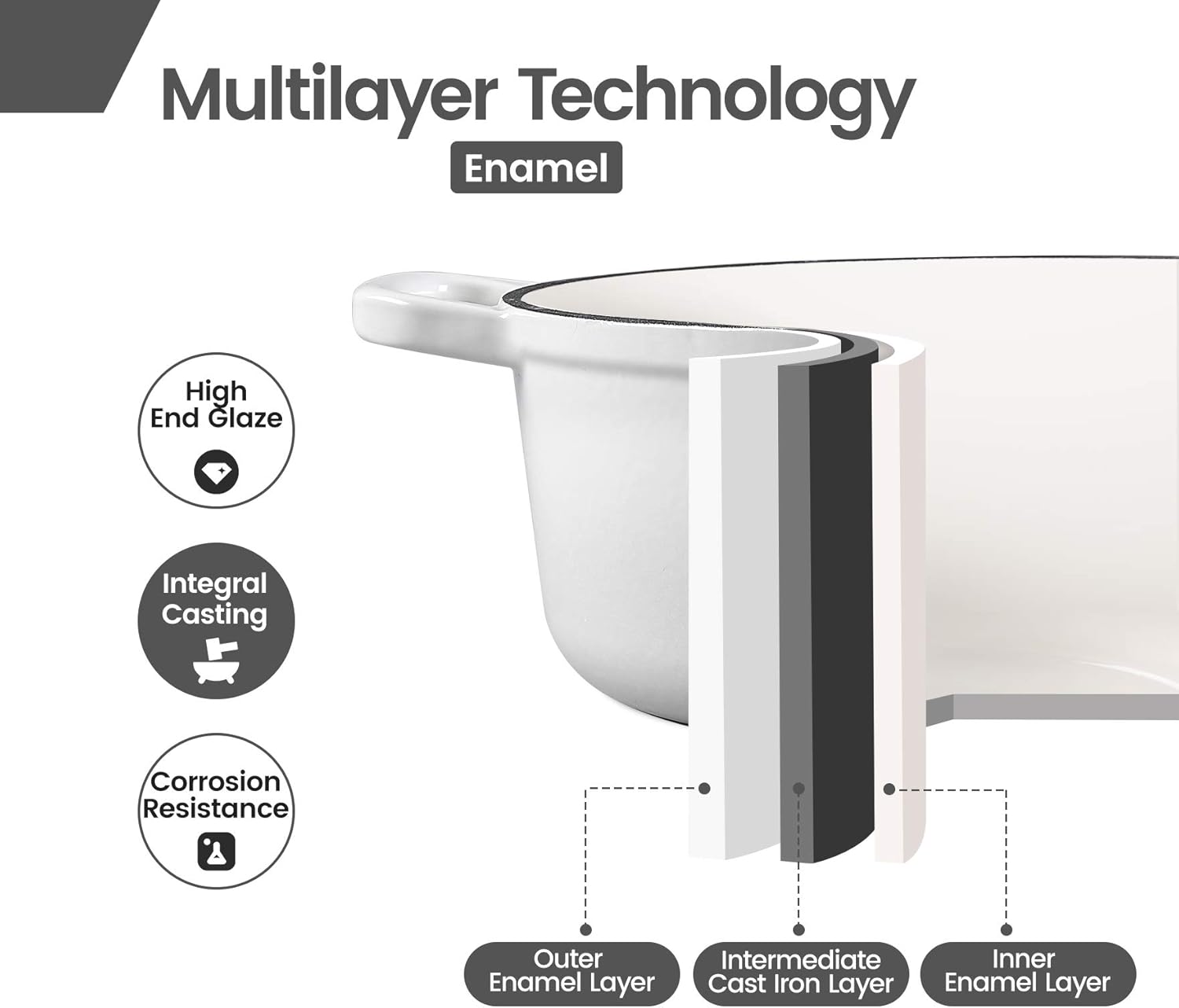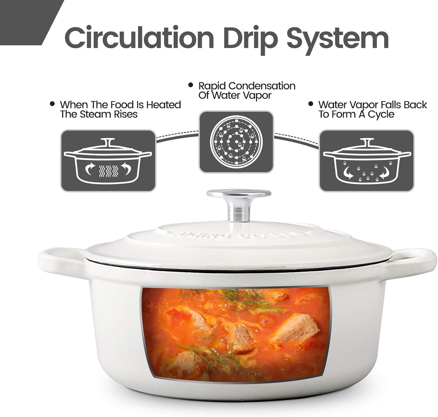 Cast Iron Dutch Oven With Lid Round Pot Enameled Covered for Bread Baking, 7 Quart, White