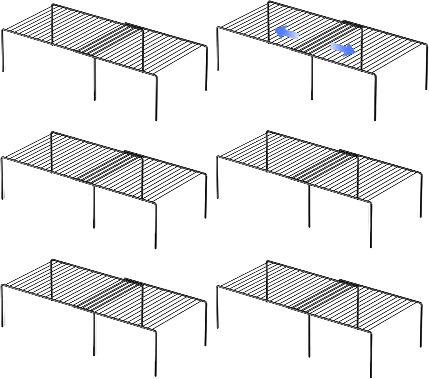 Redrubbit Cabinet Storage Shelf Rack, Expandable Metal Rustproof Kitchen Counter and Cabinet Shelf, Storage Rack Organizer Space Saver for Kitchen, Fridge, Cabinet, Bathroom, Black, Set of 6