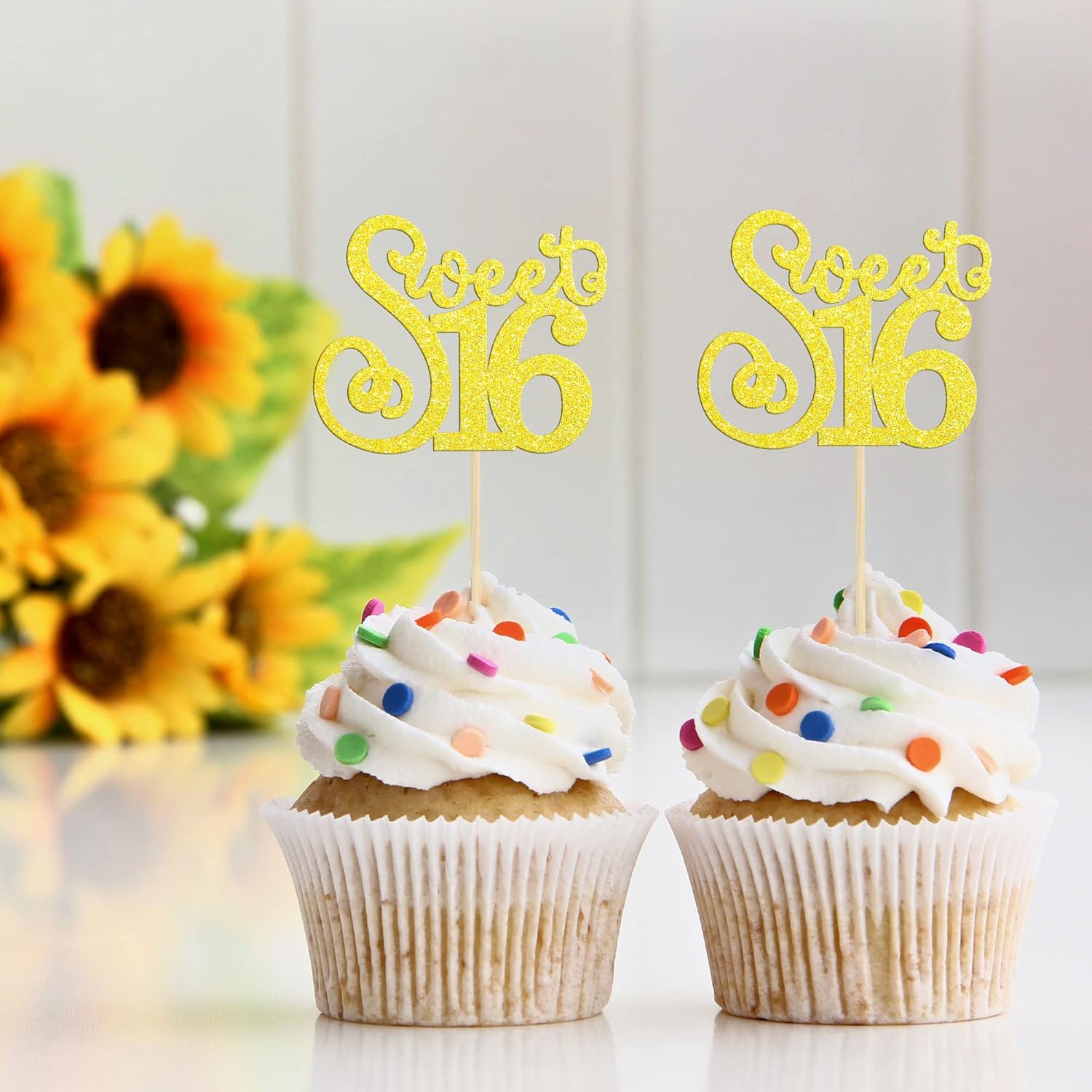 - ๐๐These Sweet 16 Cupcake Toppers are so cute and good for 16th birthday theme party, 16th anniversary theme party, 16 fabulous theme party cupcake decorations. They can make your cupcake more attractive and bring the fun to your party. You can also apply them for ice cream, fruits, cookies and other desserts.