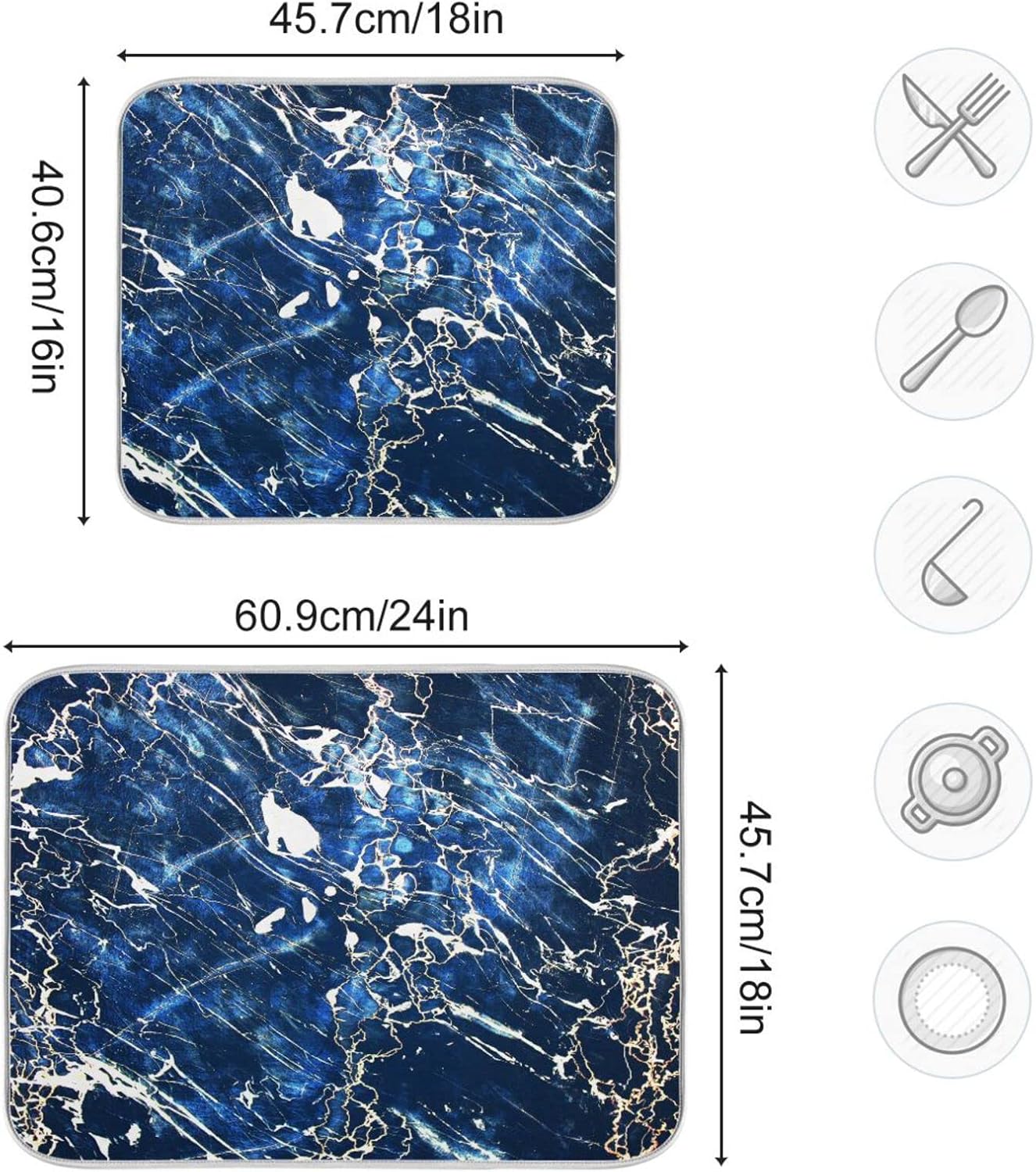 Super Absorbent Dish Drying Mat, Microfiber Fast-Drying Dish Mat, 16" x 18", Kitchen Dish Drying Pad, Marble Black Navy Blue