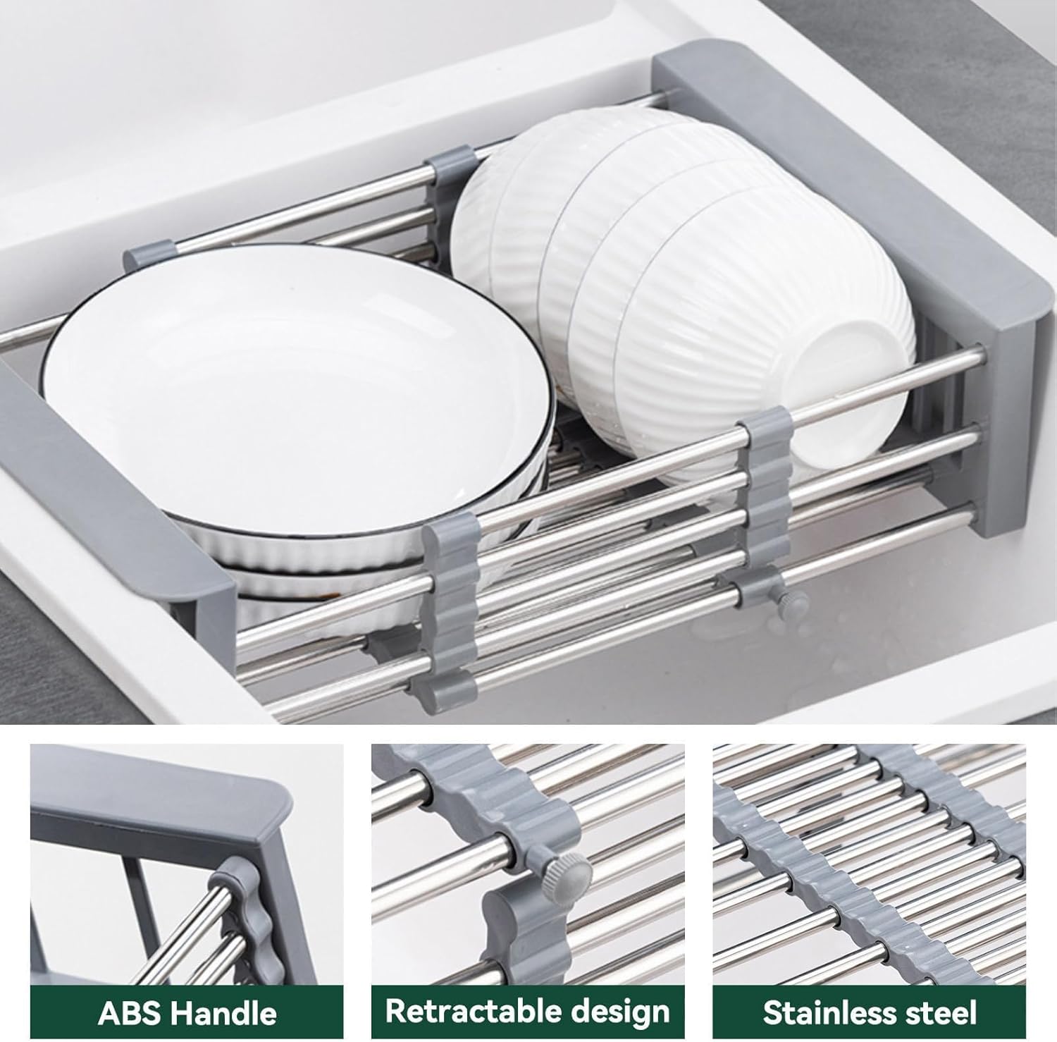 - Draining Rack: Retractable stainless steel sink strainer with adjustable bars fits over the sink, on countertop or in the sink, sink organizer only takes up only a fraction of the space, our dish drying racks is suitable for most kitchen sinks