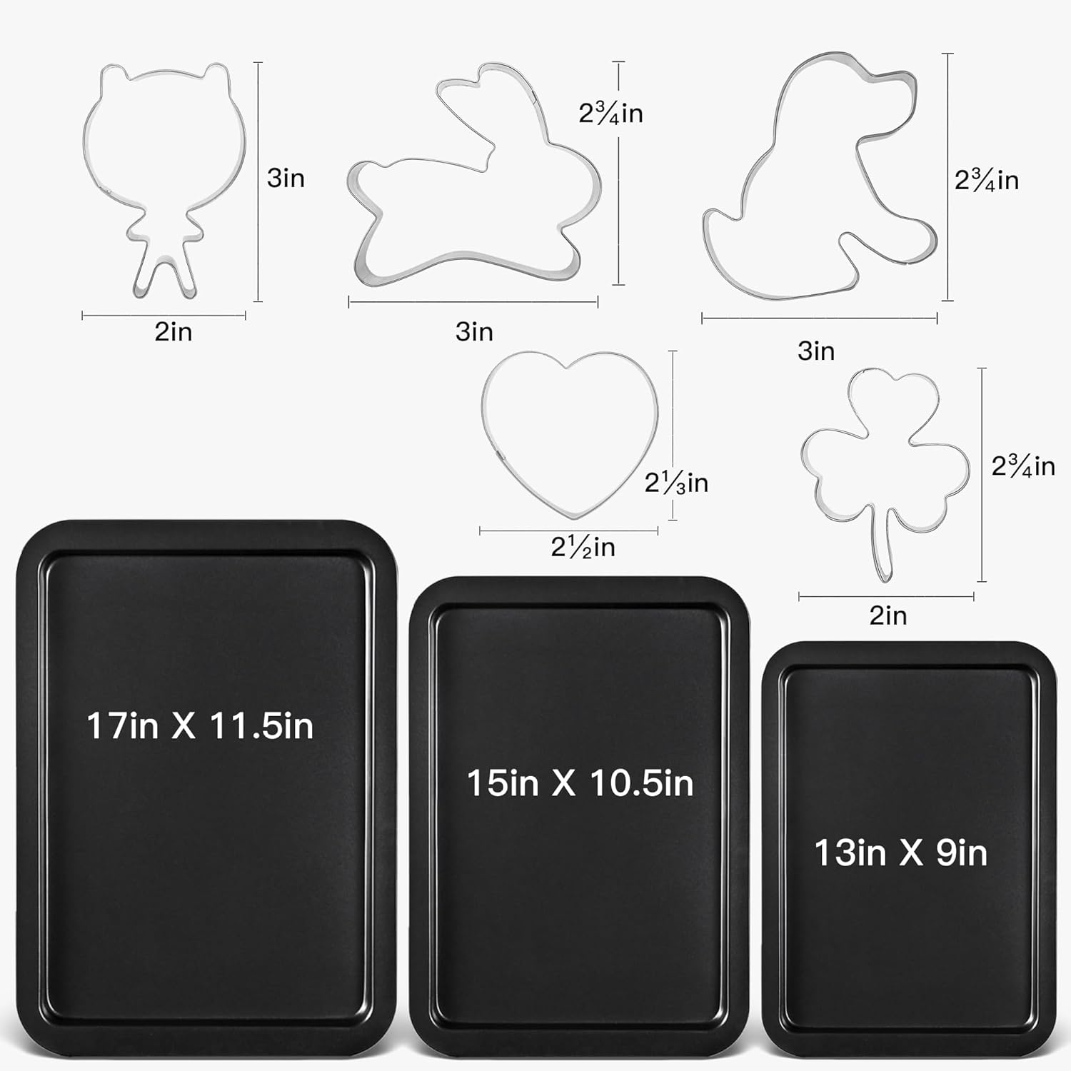 - RUST-PROOF STAINLESS STEEL COOKIE CUTTERS - Our cookie tray set also contains five sturdy cookie molds. Made of 430 stainless steel material, which has a good rust-proof effect. We believe your children will also love the cute cookie shape