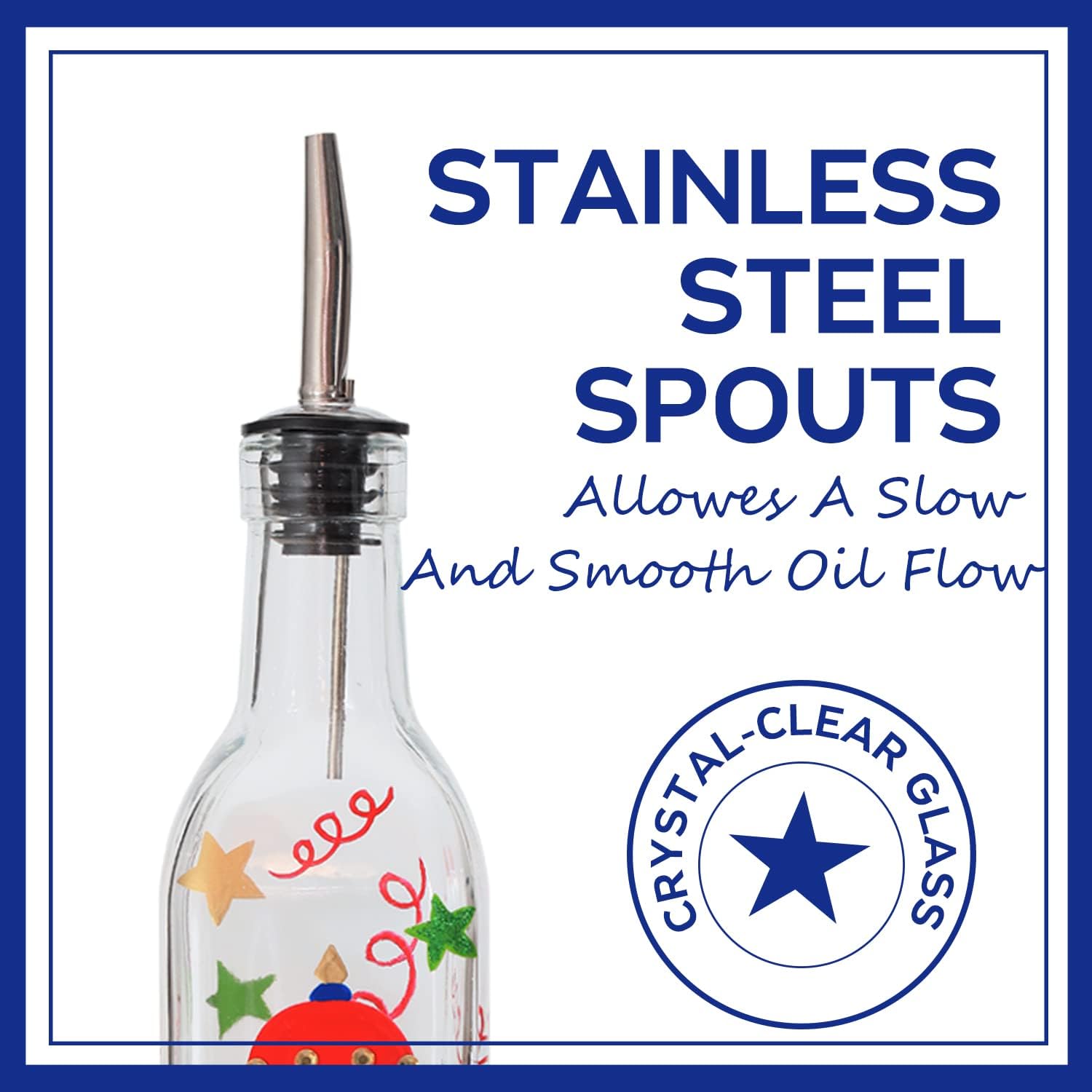17oz Hand Painted Glass Olive Oil Bottle - 500ml Green Oil & Vinegar Cruet with Pourers and Funnel - Olive Oil Carafe Decanter for Kitchen (The Nutcracker)