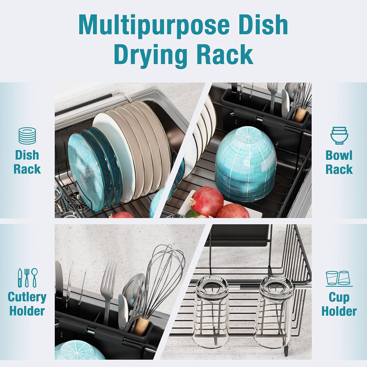 - Rustproof & Long Lasting: To prevent rust on the dish racks, this kitchen drying rack is made of food-grade Stainless Steel and constructed of thickened tube pipes, Stable and High Load Bearing