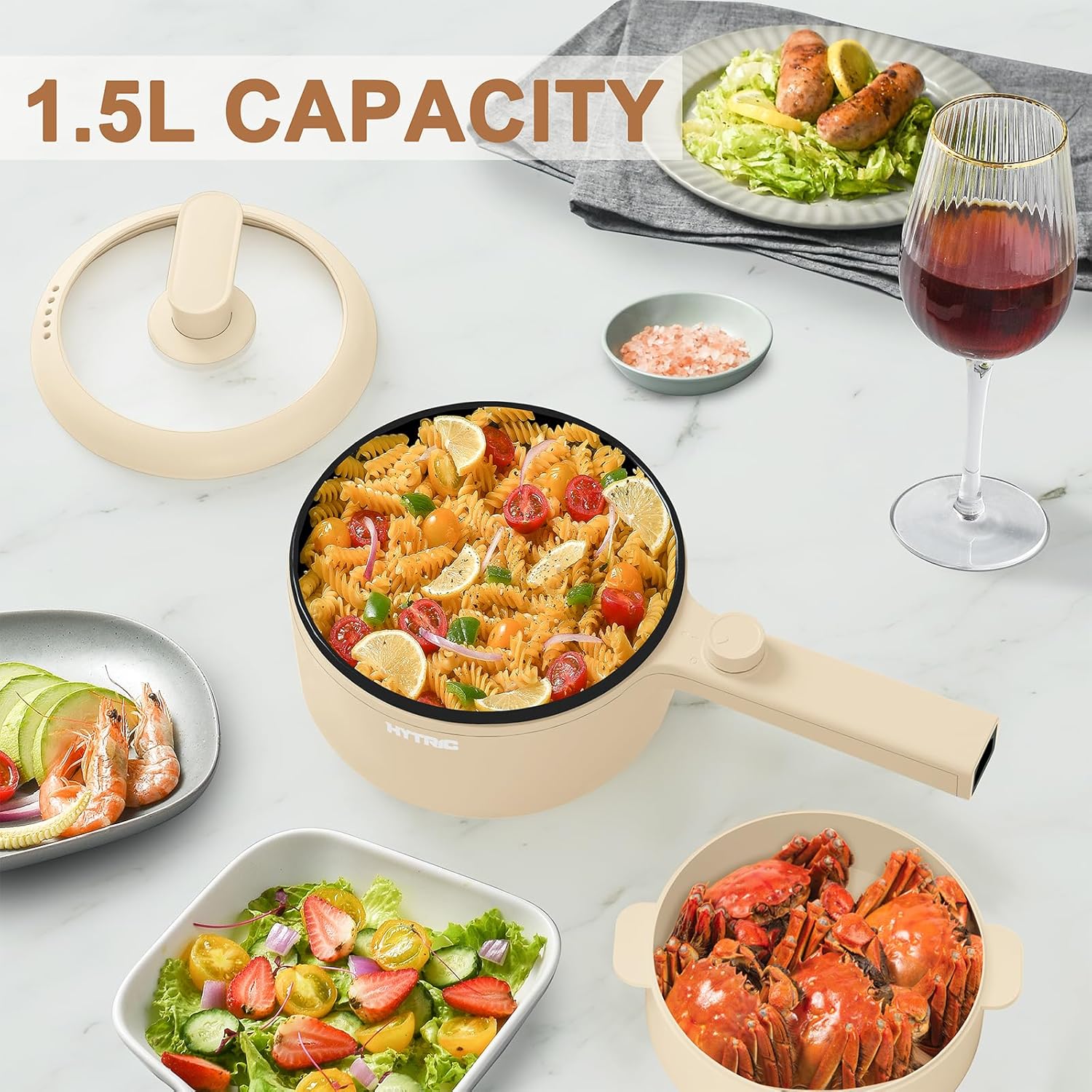 - 【1.5L Cooking Capacity with Steamer】The 1.5L capacity of our electric pot makes it the perfect size for individuals or small families. The hot pot features a steamer, allow you to steam above while cooking below. Its compact size allows for easy storage and makes it ideal for use in small kitchens, offices, dorm rooms or vans.