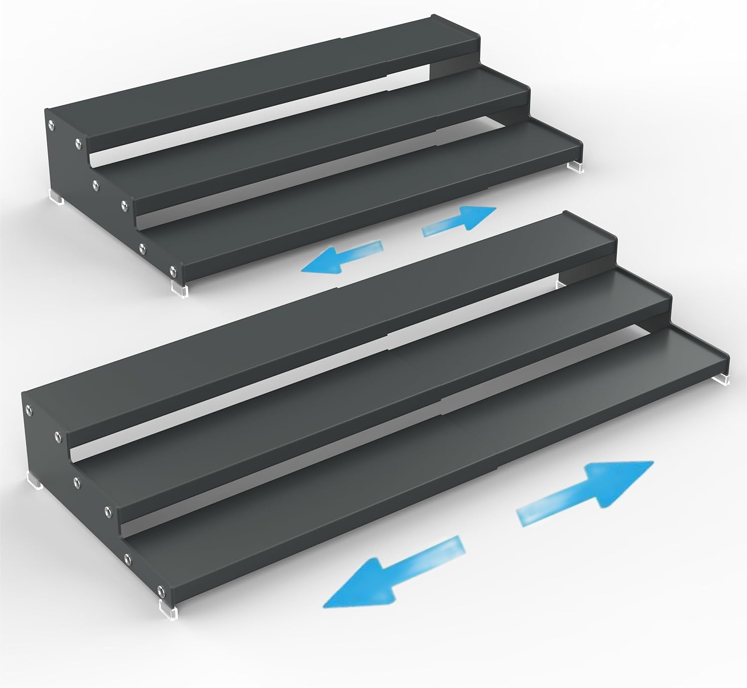 Expandable Spice Rack Storage organizer with 3-Tier step shelf cabinet,seasoning rack organizion.Great for Kitchen countertop shelves,Bathroom,dressing table,Cupboard,Pantry and more(2packs/Gun-gray)